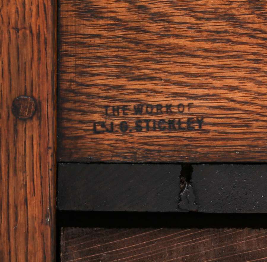 L&JG Stickley #285 Davenport Bed – Evenarm Settle c1912-1915. Pullout front to accommodate fold out cushion. Signed with branded mark. Original finish. 79″w x 27″d x 35″h SOLD