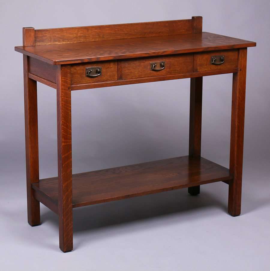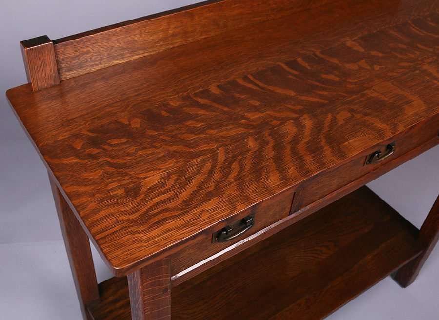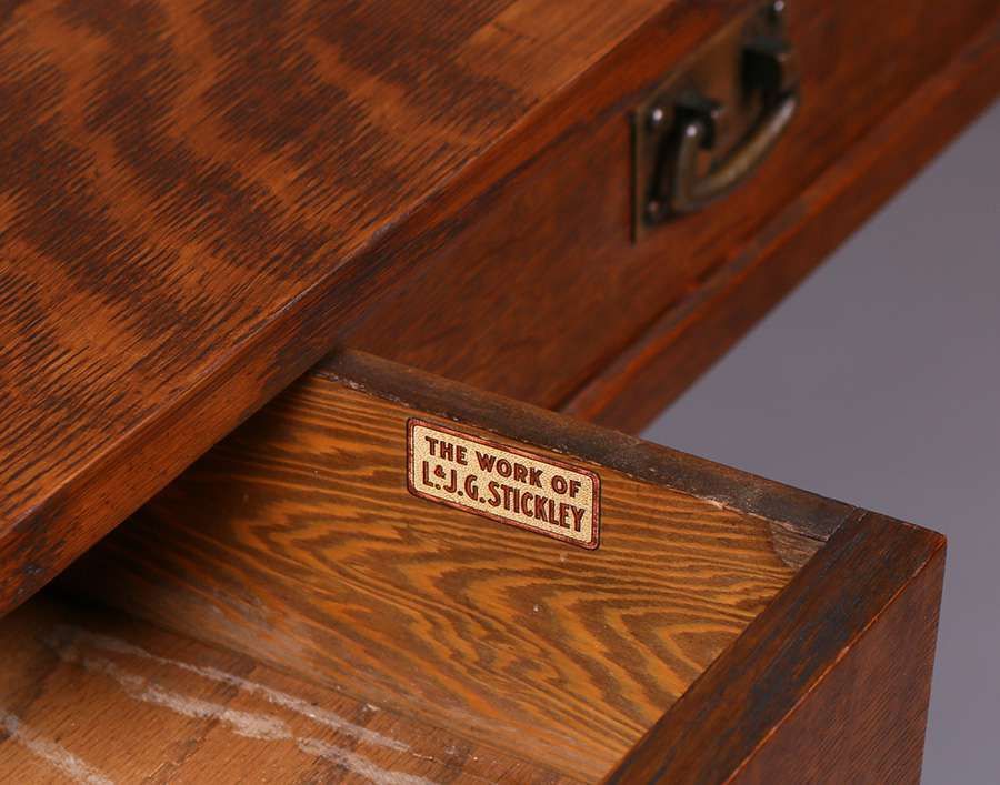 . L&JG Stickley three-drawer server. Signed. Original finish, except top surface refinished. 44"w x 18"d x 39.5"h SOLD