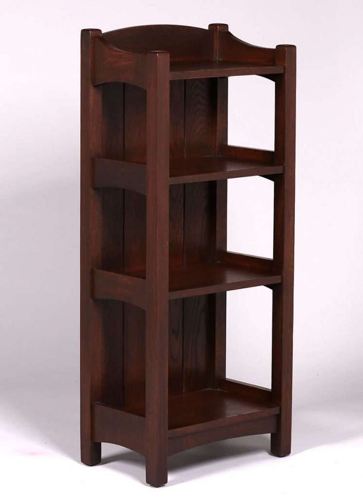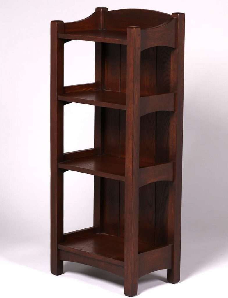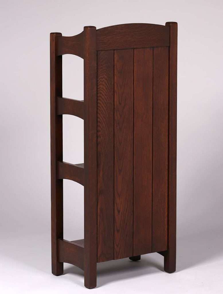 L&JG Stickley #45 Magazine Stand c1904. Unsigned. Chamfered board back. Very nicely refinished. Rock solid sturdy. 45″h x 19″w x 12″d SOLD
