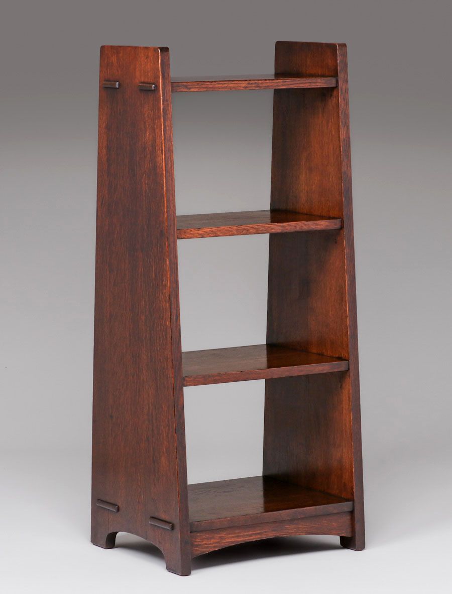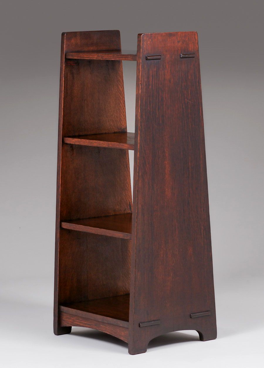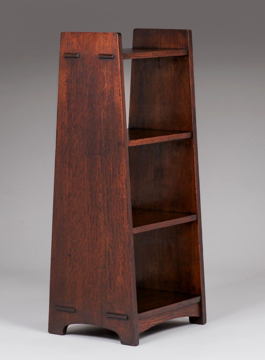 L&JG Stickley #47 Slab-Sided Magazine Stand c1910. Signed. Excellent original finish. 42″h x 18″w x 15″d (at base) x 10″d (at top) SOLD