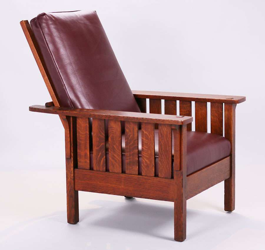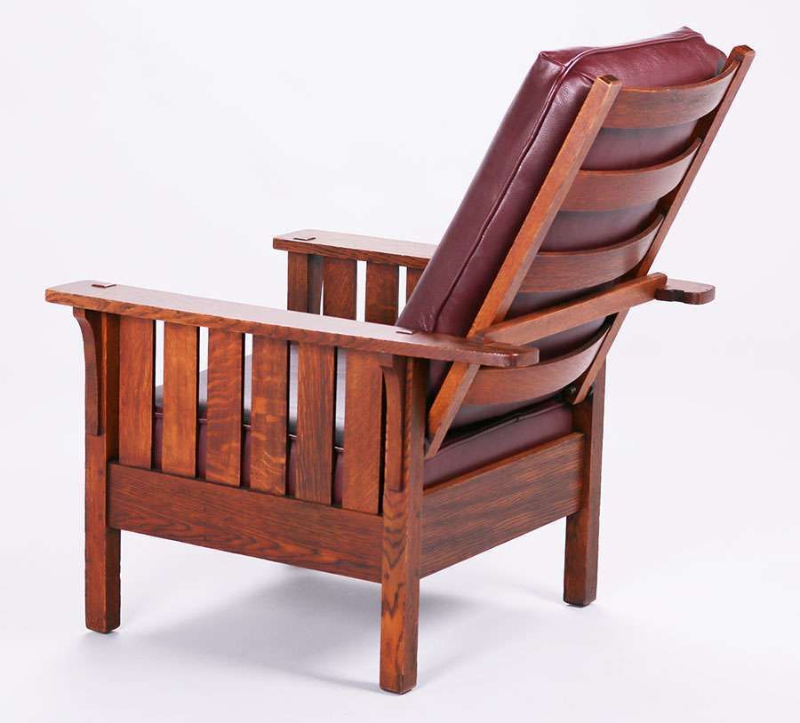 L&JG Stickley #471 Morris chair. Signed. Original finish. 41.5"h x 31.5"w x 35"d SOLD