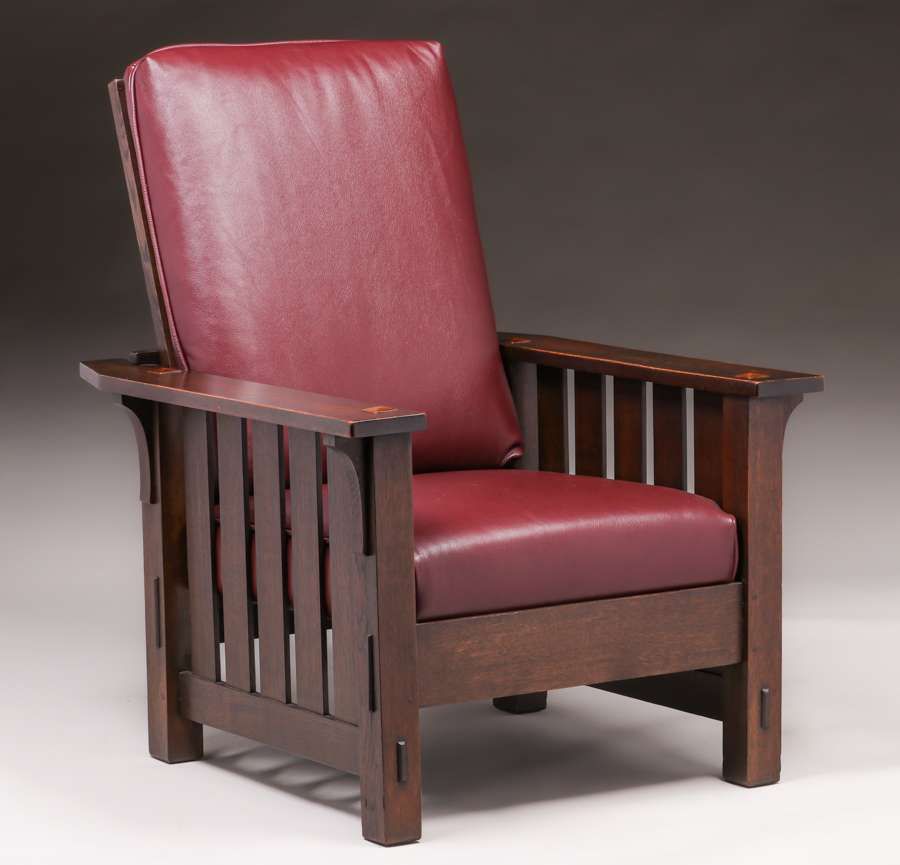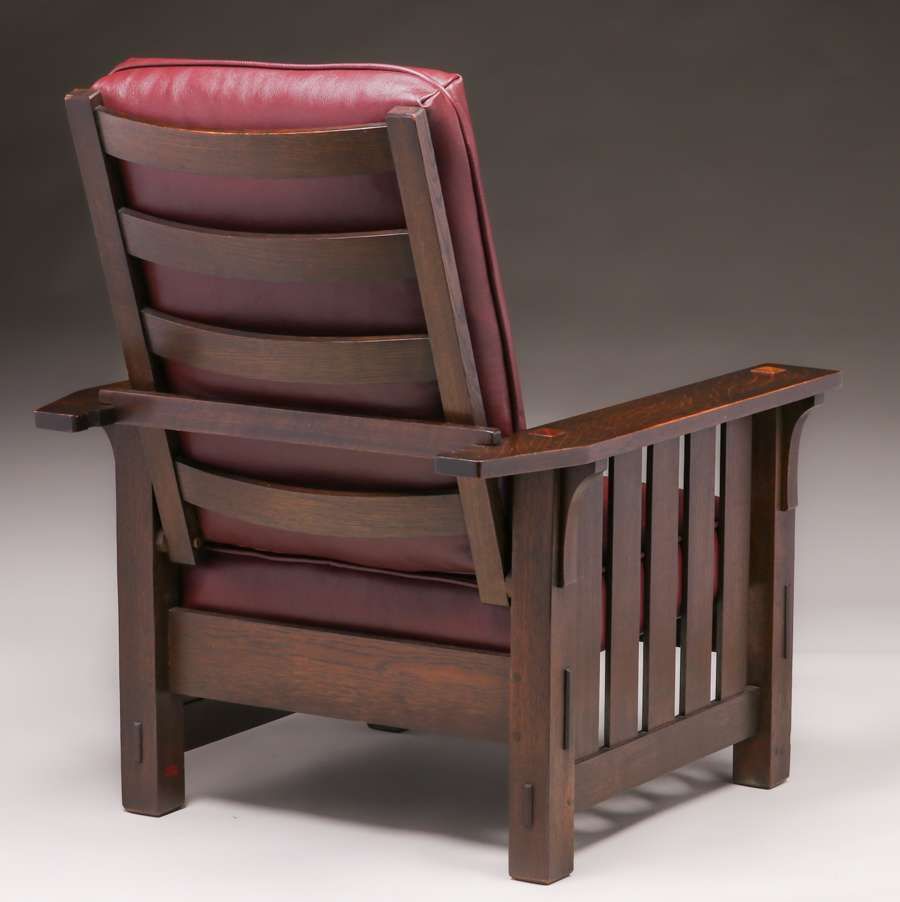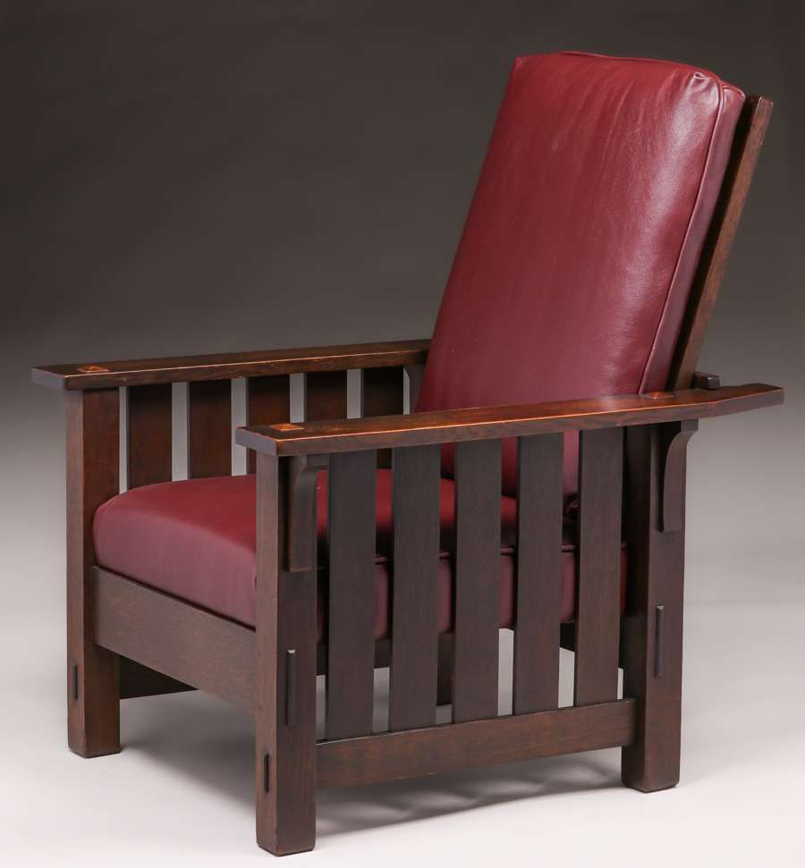 L&JG Stickley #498 Slatted Morris Chair c1905-1907. Signed. Excellent original finish. 42.5"h x 32.25"w x 35.5"d SOLD