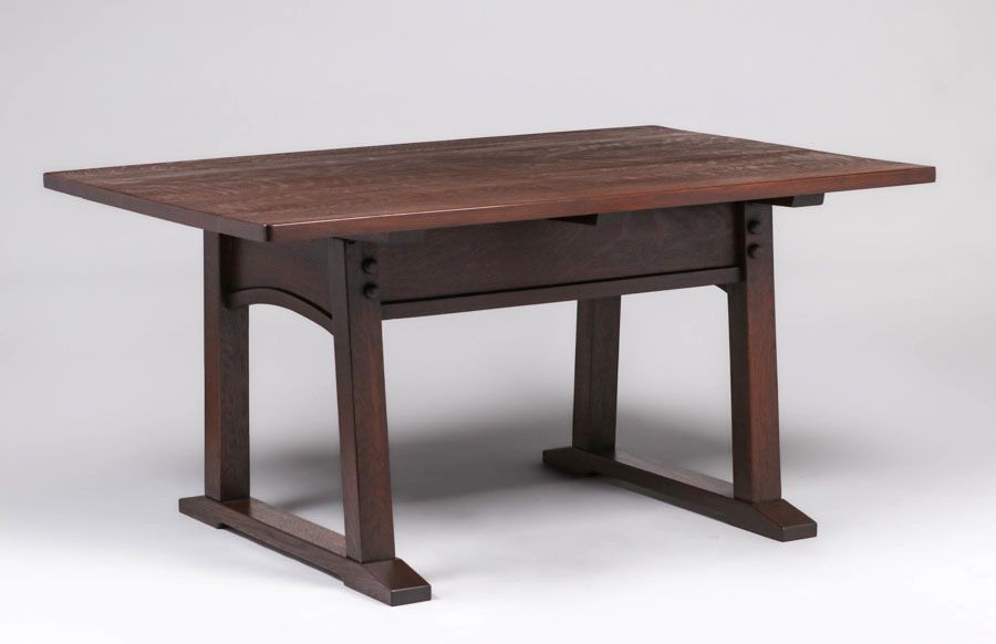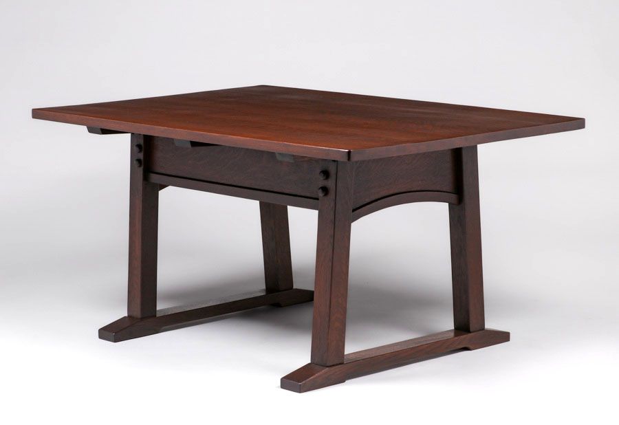 L&JG Stickley #548 Director's Table c1910. Unsigned. Shoe-feet perfectly reconstructed. Very nicely refinished. This form hasn't surfaced in the last 30+ years. 60"w x 40.5"d x 29.5"h SOLD