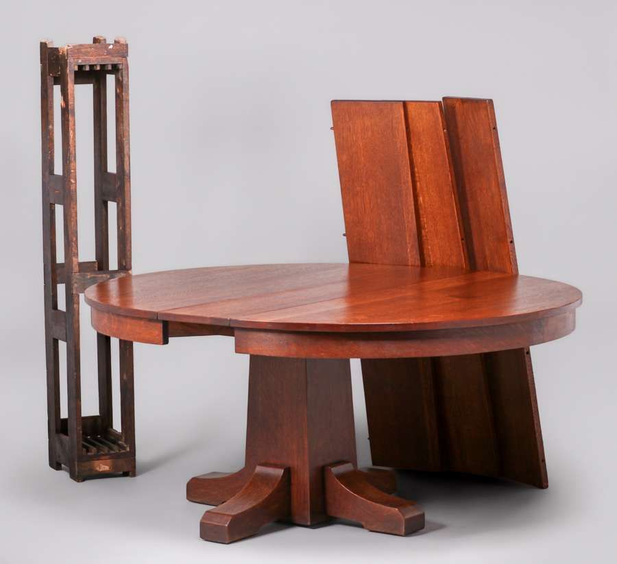 - L&JG Stickley 54"d Dining Table & 6 Chairs c1910