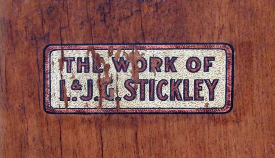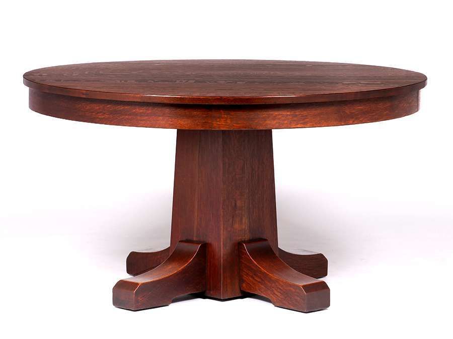 L&JG Stickley 54"d Dining Table with 8 Original Leaves c1907-1912. Signed. Very nicely refinished. 54"d x 29"h (opens to 54" x 142" with hidden dropdown legs for support) SOLD