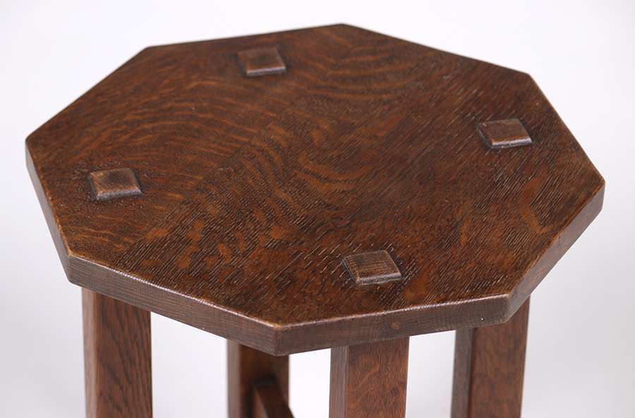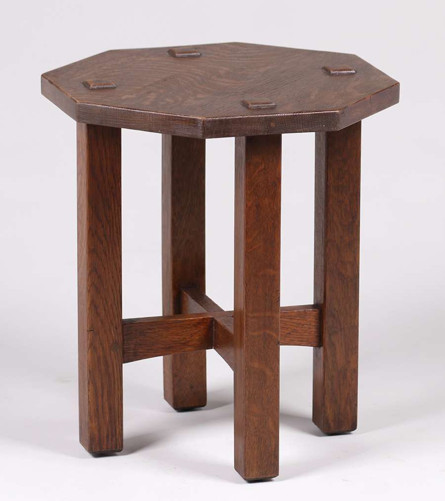 L&JG Stickley #558 taboret. Unsigned. Top refinished perfectly to match original finish base. 17"h x 15"d SOLD