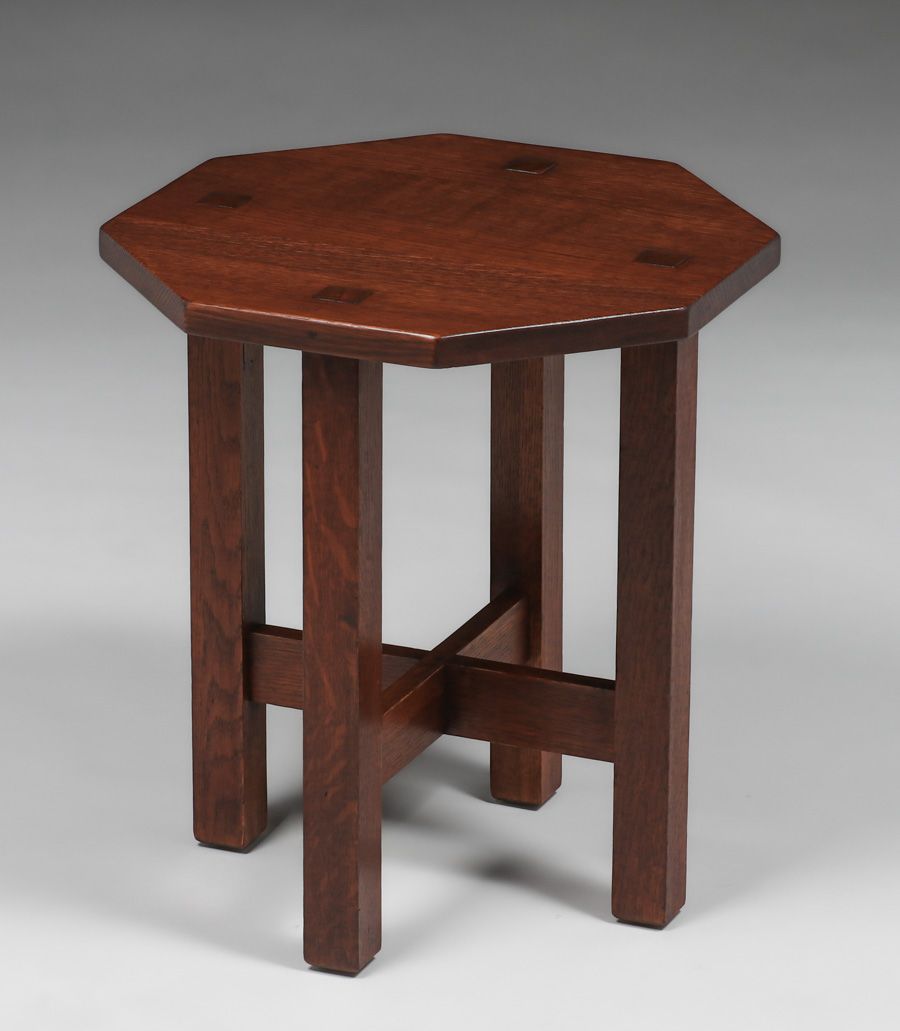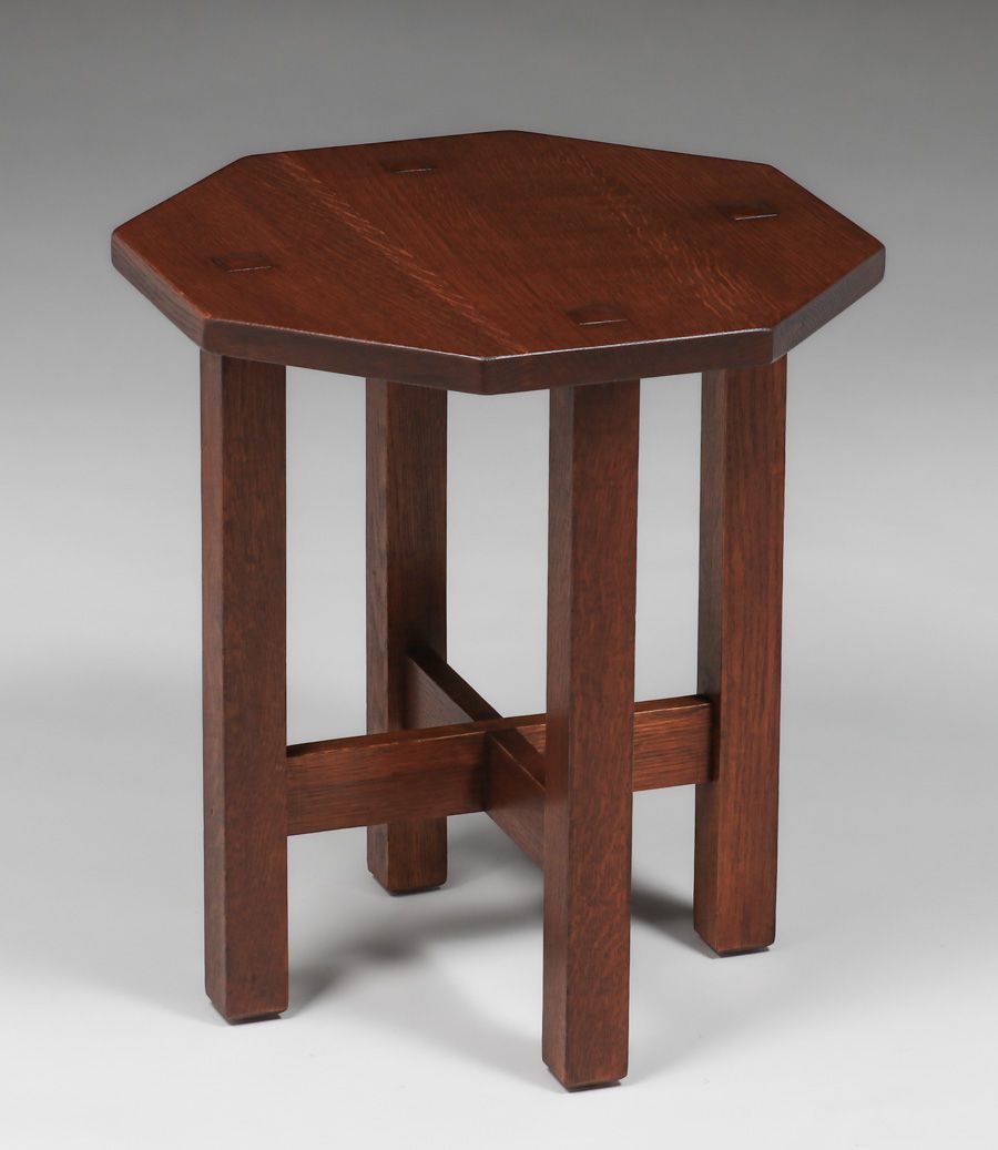 L&JG Stickley #559 Oak Taboret c1910. Unsigned. Very nicely refinished. 20"h x 18" x 18" SOLD