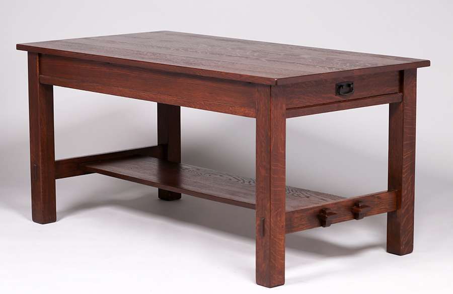 Rare variation L&JG Stickley 60" Library Table with Drawer on each end c1907-1912. Signed. Very nicely refinished. Rock solid sturdy. 60" x 31.5"w x 29.5"d SOLD