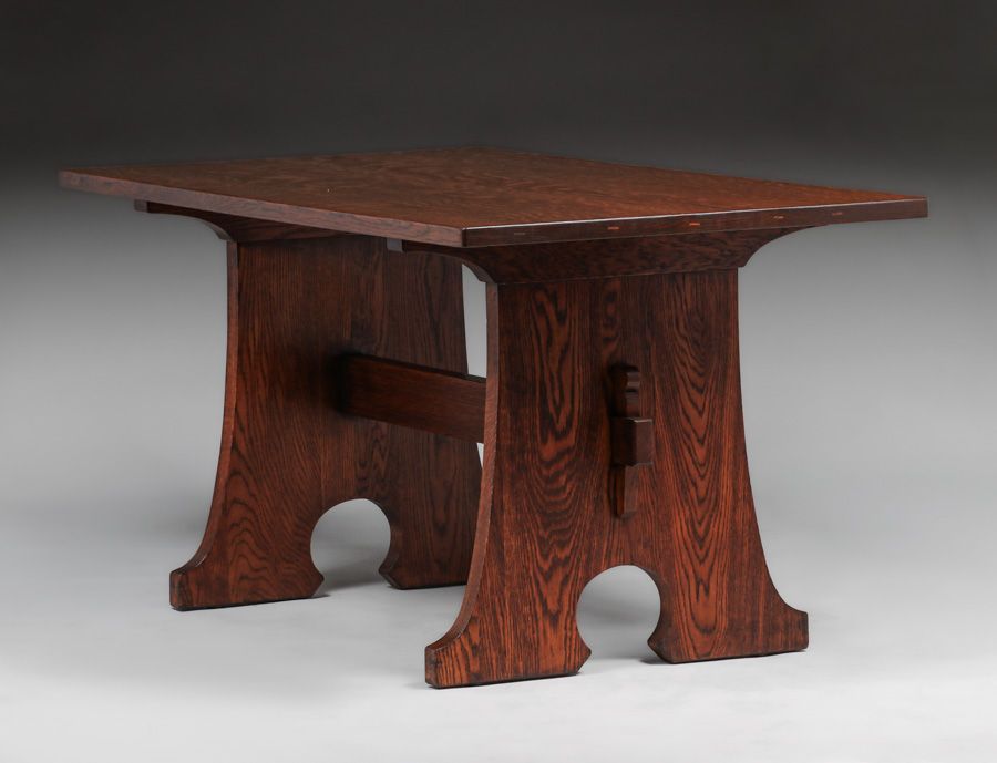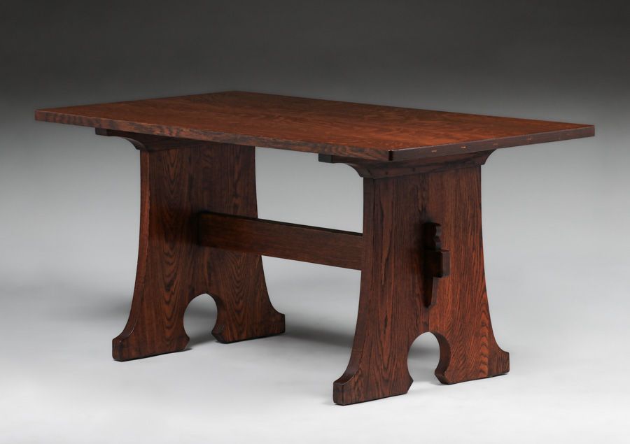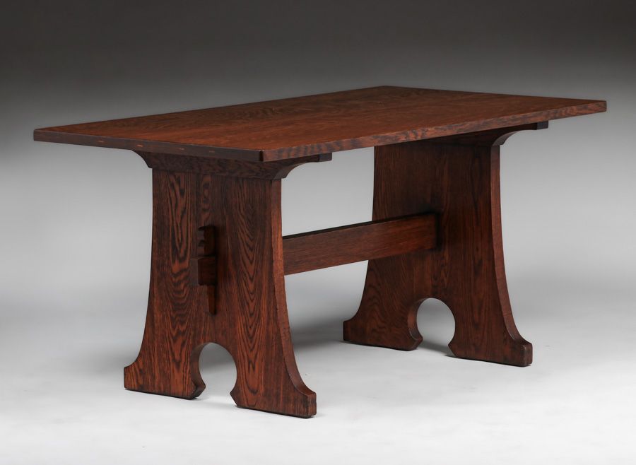 - L&JG Stickley 60"w Mouse-Hole Trestle Table c1910