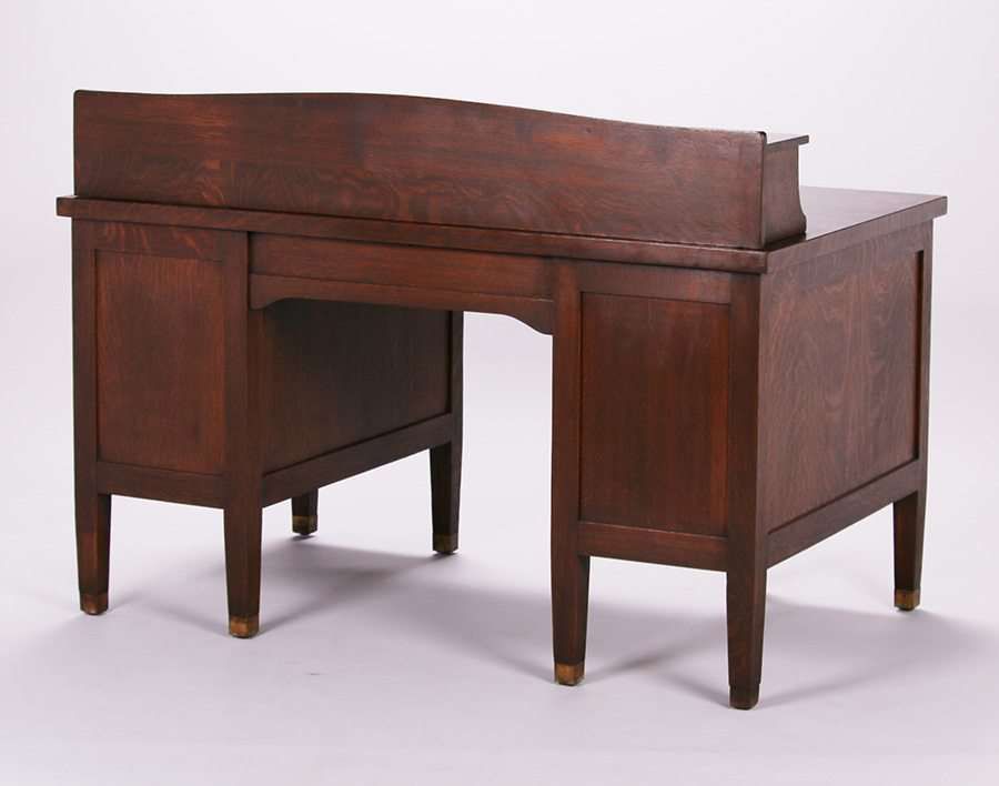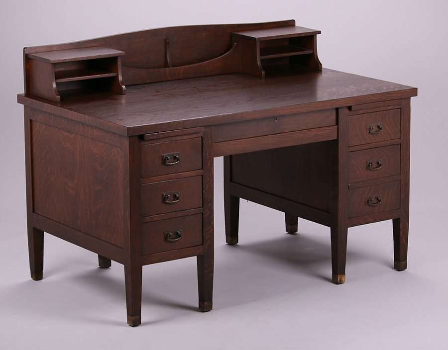 L&JG Stickley executive desk with 7 drawers and gallery top. Signed. Refinished. 54.5"w x 32.5"d x 39"h SOLD