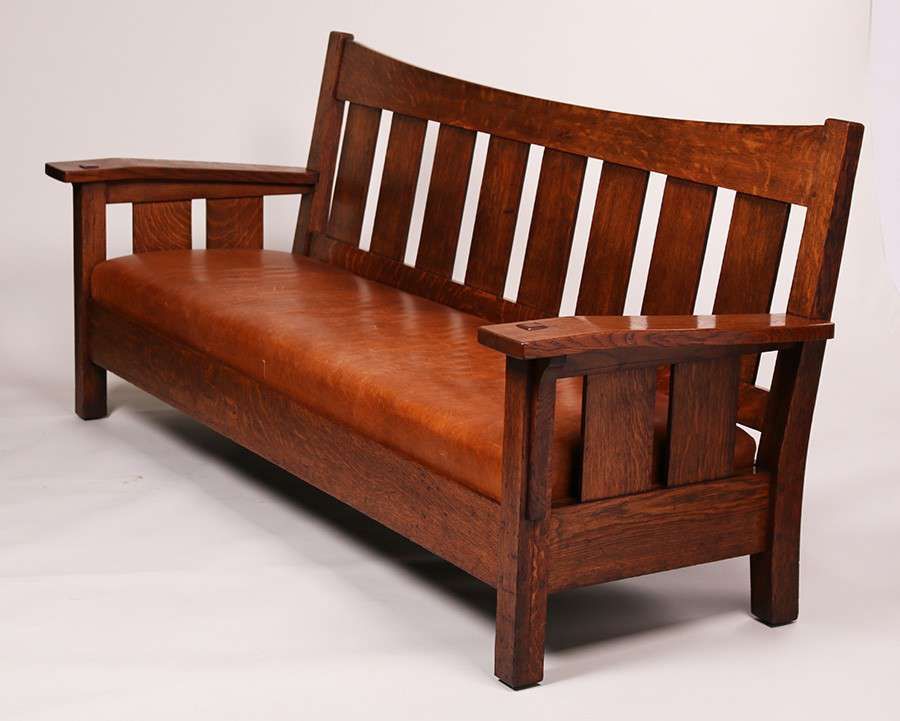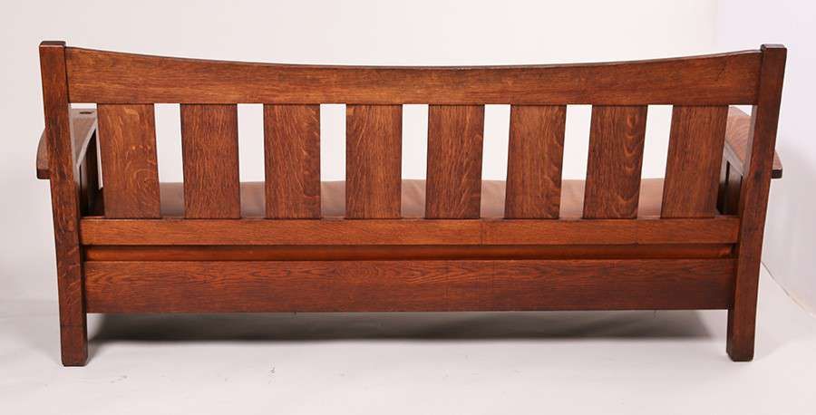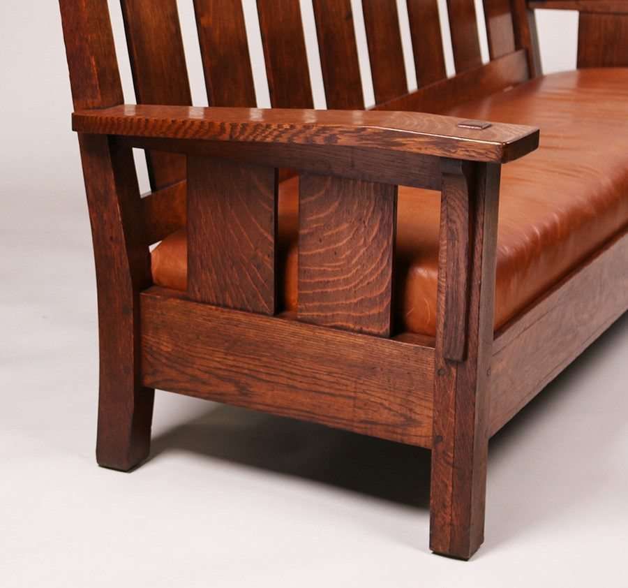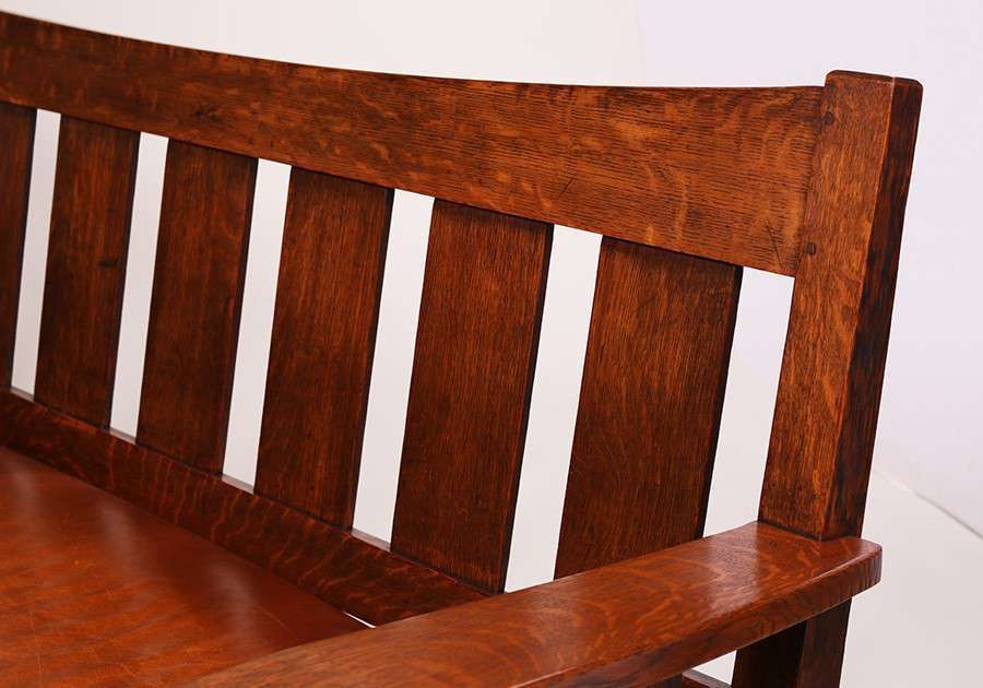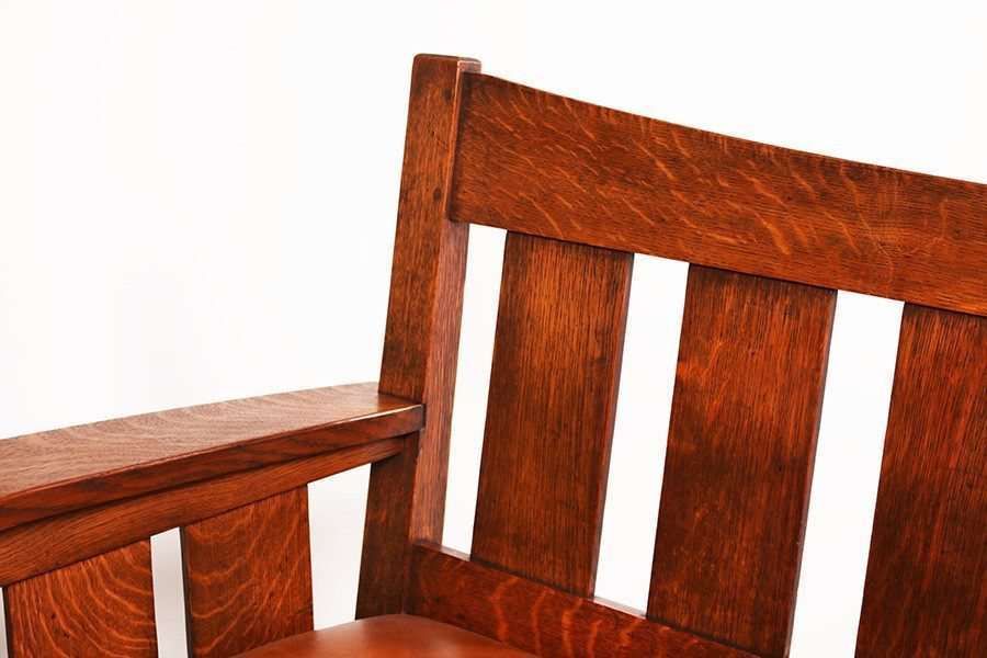 L&JG Stickley Bentarm Settle. Larger rare variation. Signed. Original finish. 85"long x 36.5"h x 30"d SOLD