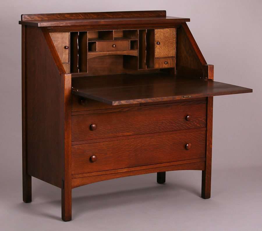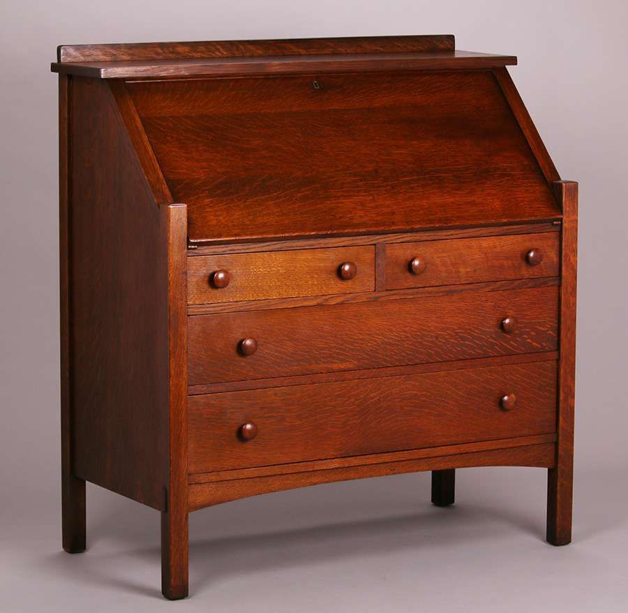 L&JG Stickley 4-drawer dropfront desk. Unsigned. Excellent original finish except top surface. 44.5"h x 42"w x 20.5"d SOLD