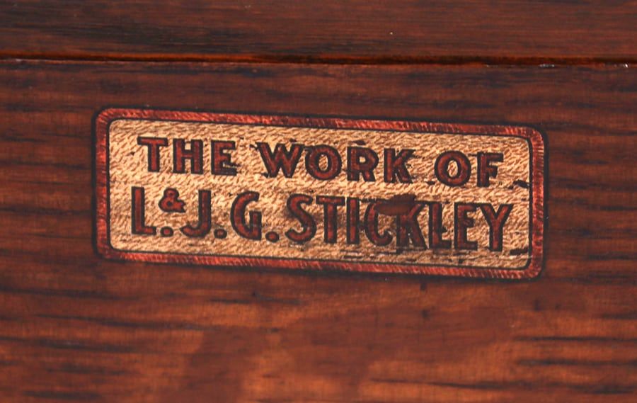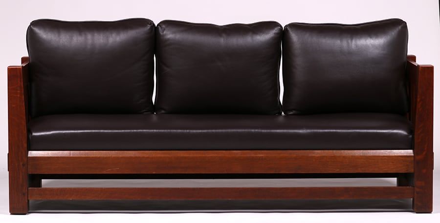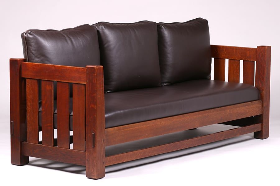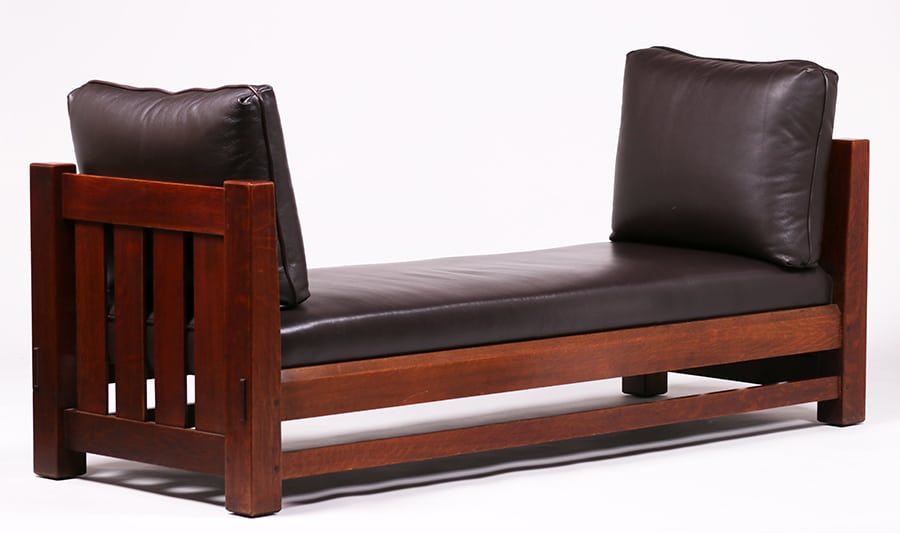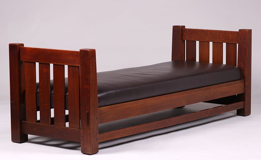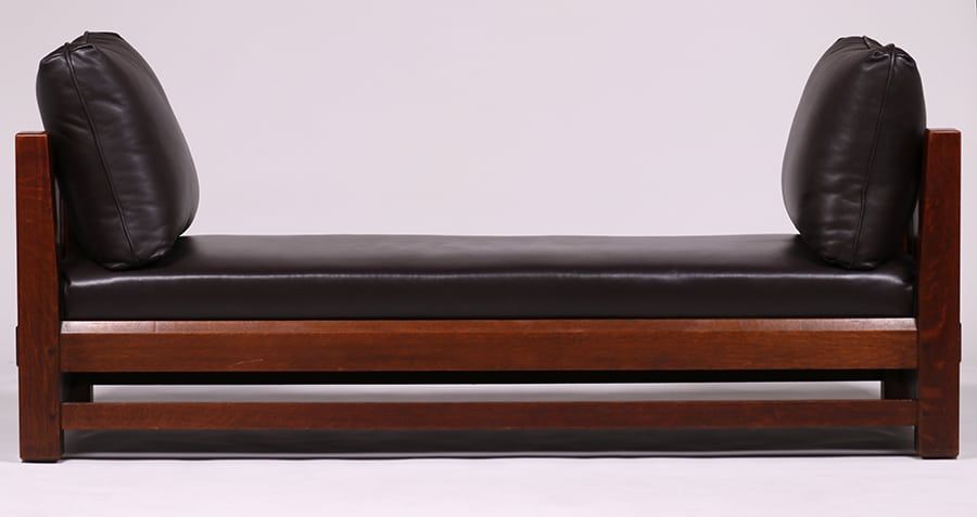 L&JG Stickley evenarm daybed. Signed. Excellent original finish. With three pillows along a wall, it becomes a sofa. 80"w x 30"d x 28"h (34"h with pillows) $5500