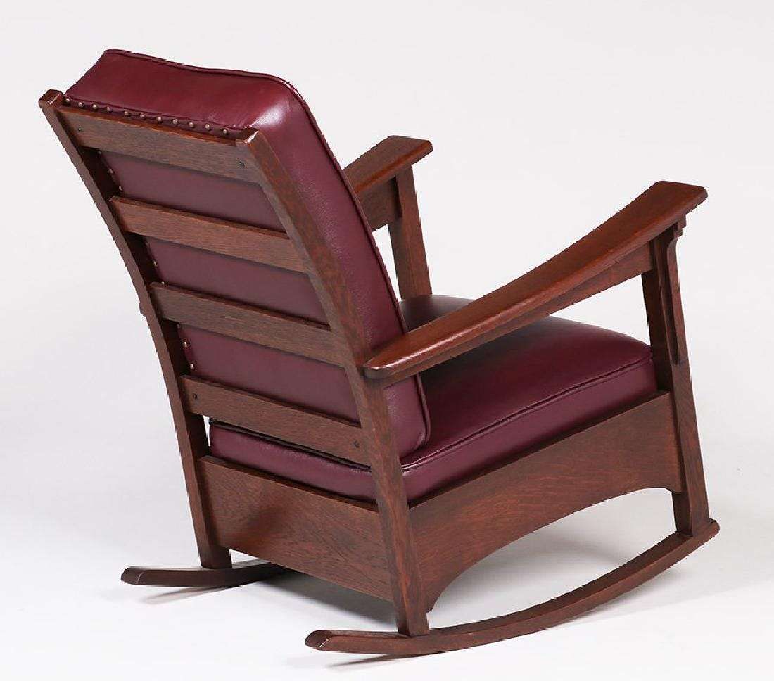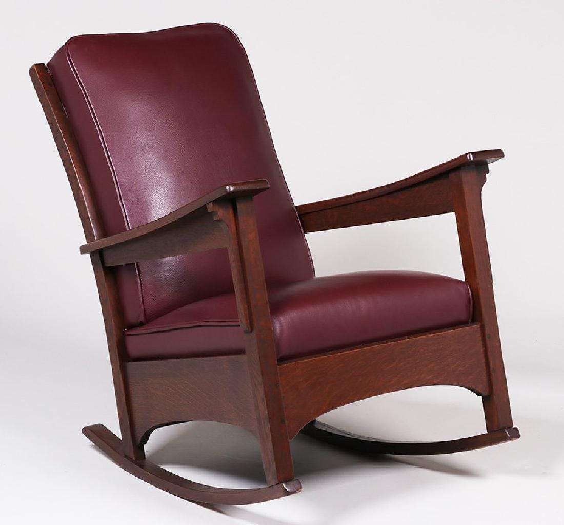 L&JG Stickley Flared Arm Rocker c1910. Unsigned. Very nicely refinished. Rock solid sturdy. 36.5"h x 29" x 32"d SOLD