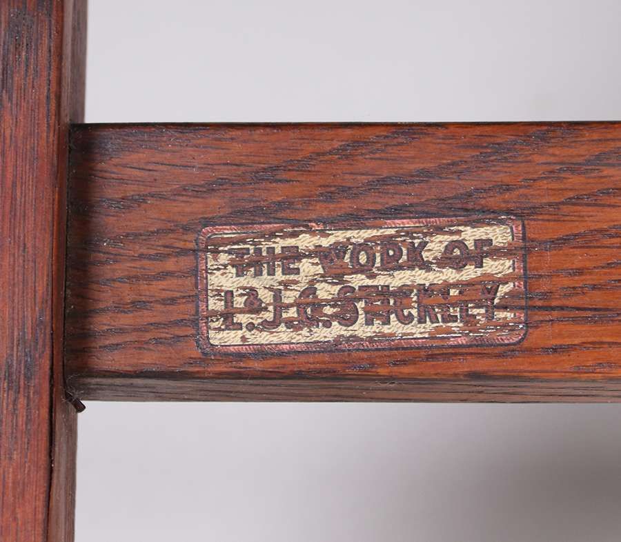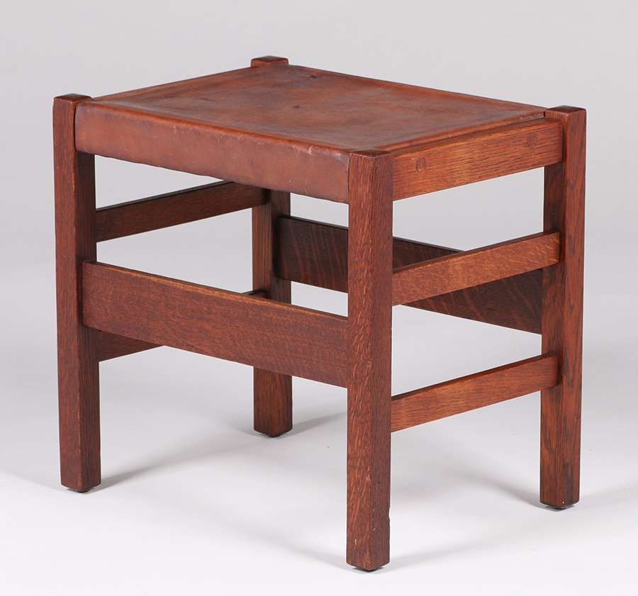L&JG Stickley footstool c1910. Signed. Excellent original finish and original leather. 18.25"h x 19"w x 14"d SOLD