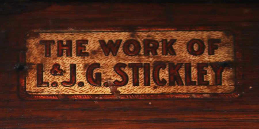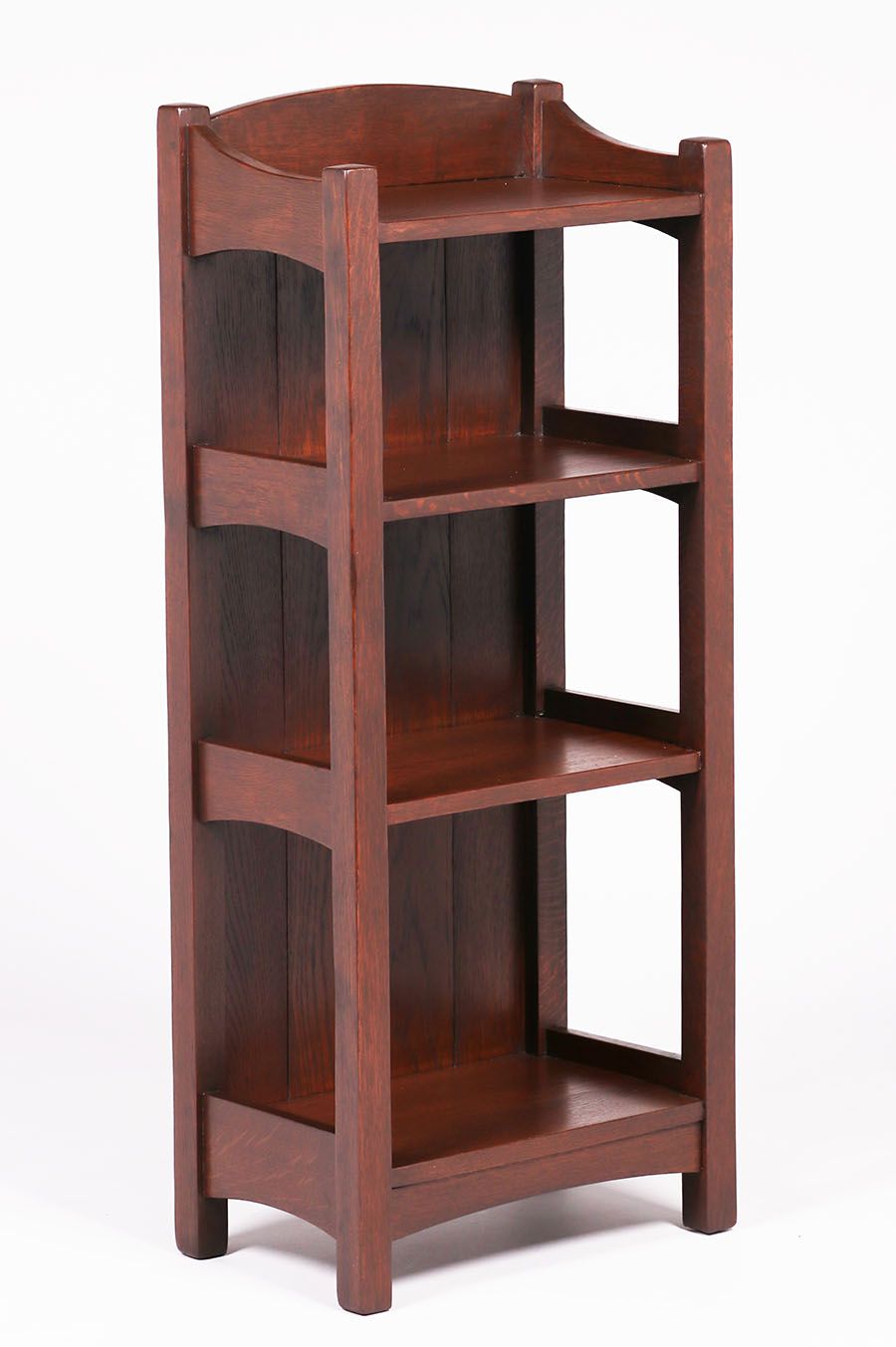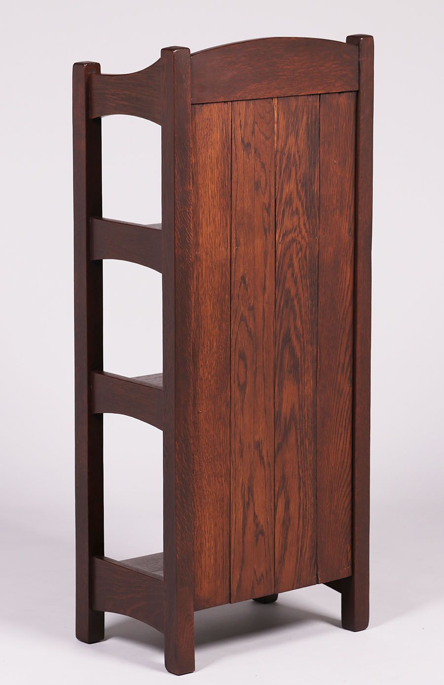 L&JG Stickley magazine stand with chamfered board back. Signed. Very nicely refinished. 45"h x 19"w x 12"d SOLD