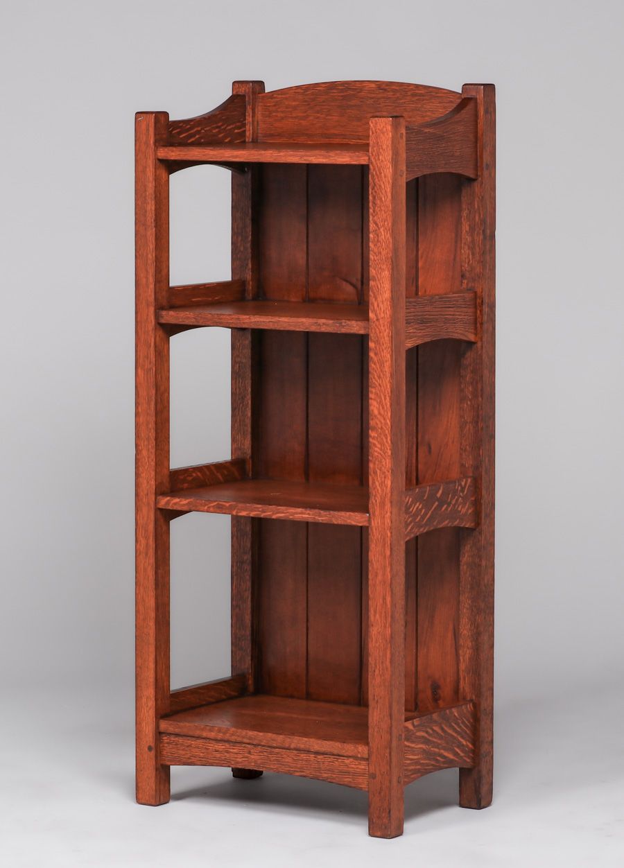 L&JG Stickley Magazine Stand #45 c1905-1907. Signed. Very nice old refinish. 45″h x 19″w x 12″d SOLD