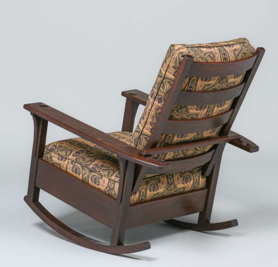 L&JG Stickley Morris Rocker c1912-1915. Signed with branded mark. Very nicely refinished. Rock solid sturdy. 37.5″h x 29.25″w x 35″d SOLD