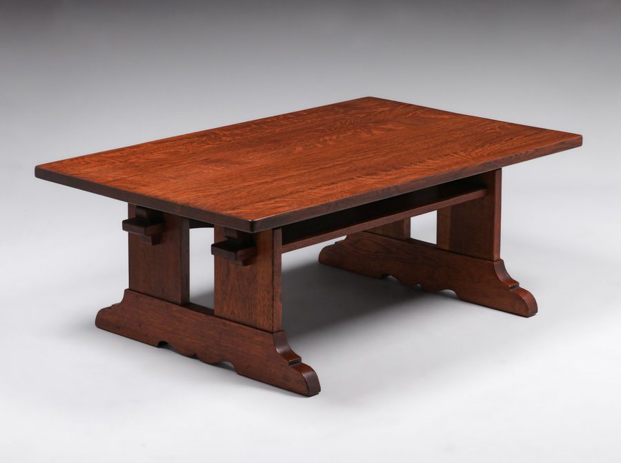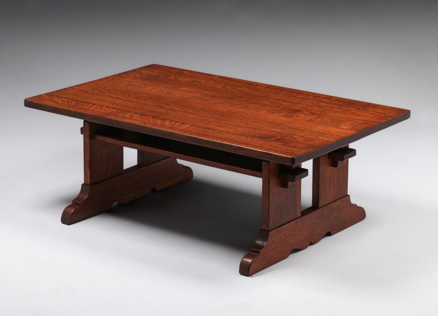 L&JG Stickley Oak Coffee Table c1910. Unsigned. Originally a taller table. Very nicely refinished. 48"w x 29.75"d x 18"h SOLD