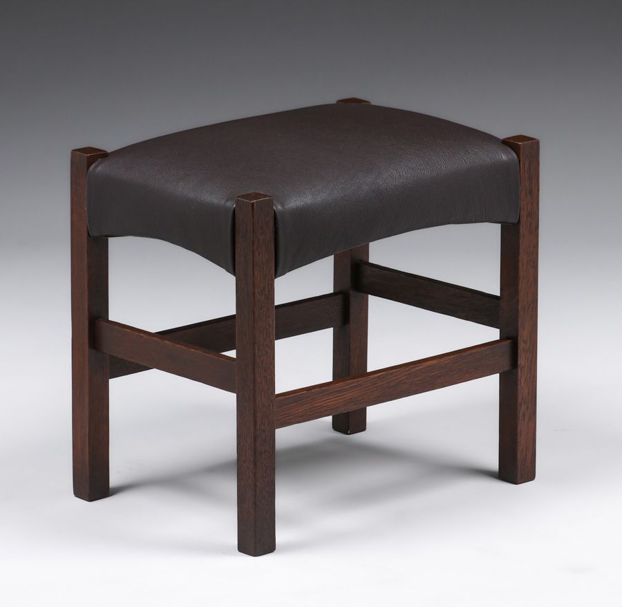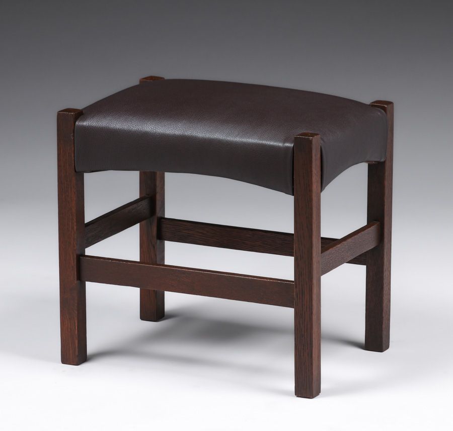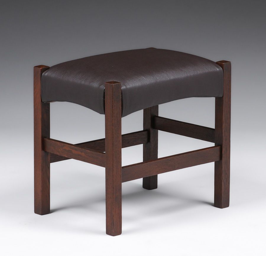L&JG Stickley Oak Footstool c1910. Unsigned. Very nicely refinished. 18”w x 12.75”d x 16.75”h SOLD