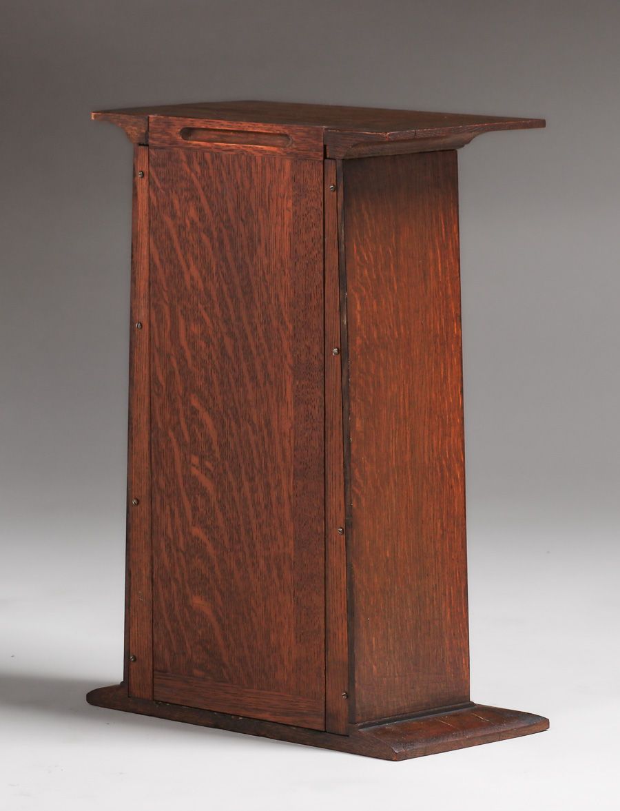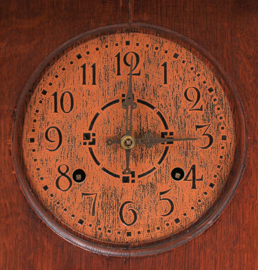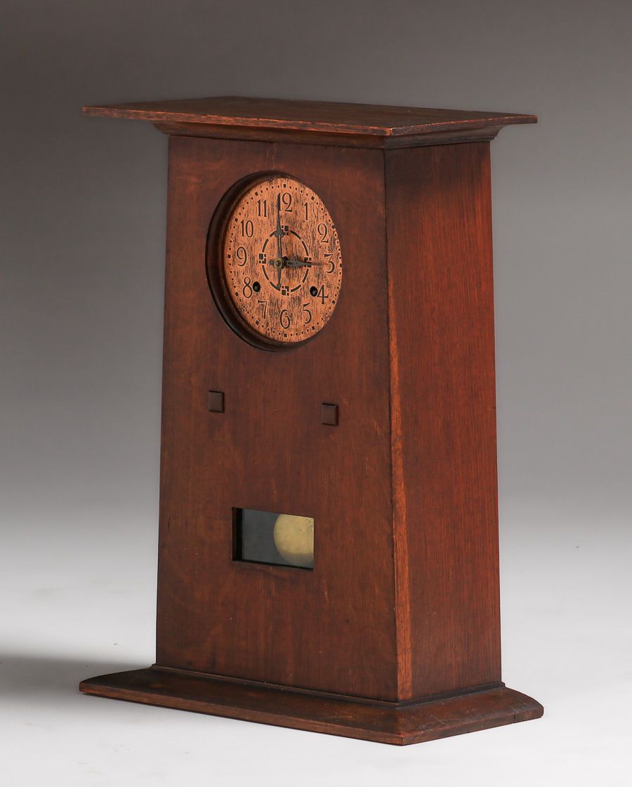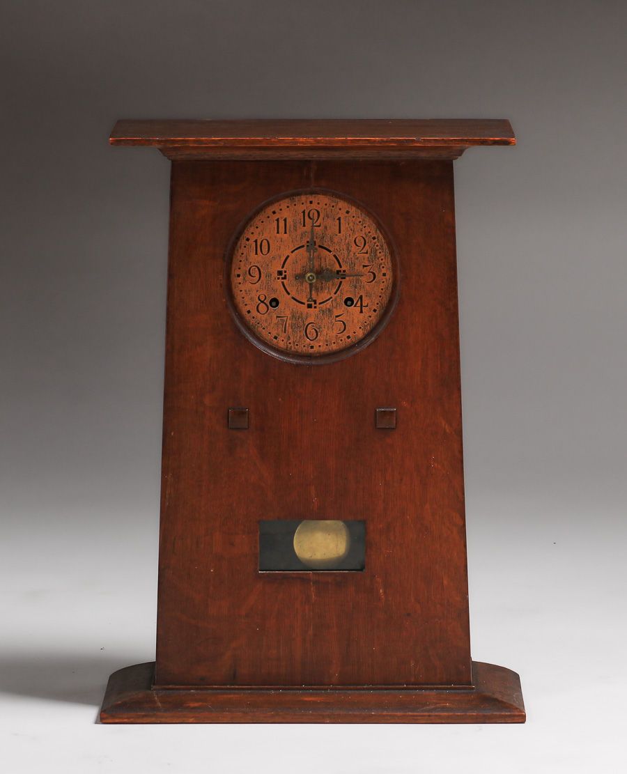 L&JG Stickley Oak Mantle Clock c1910. Unsigned. Excellent original finish. In excellent working condition. 22”h x 16”w x 8”d SOLD