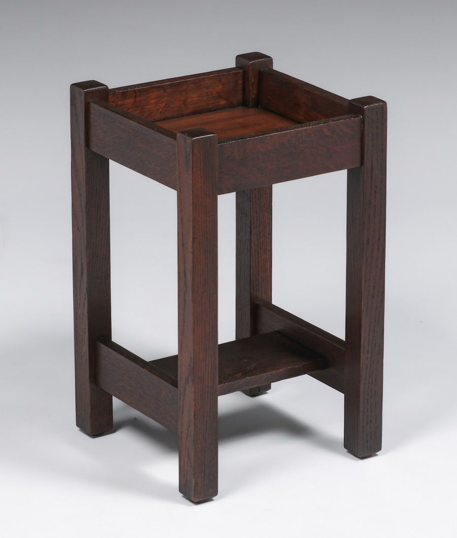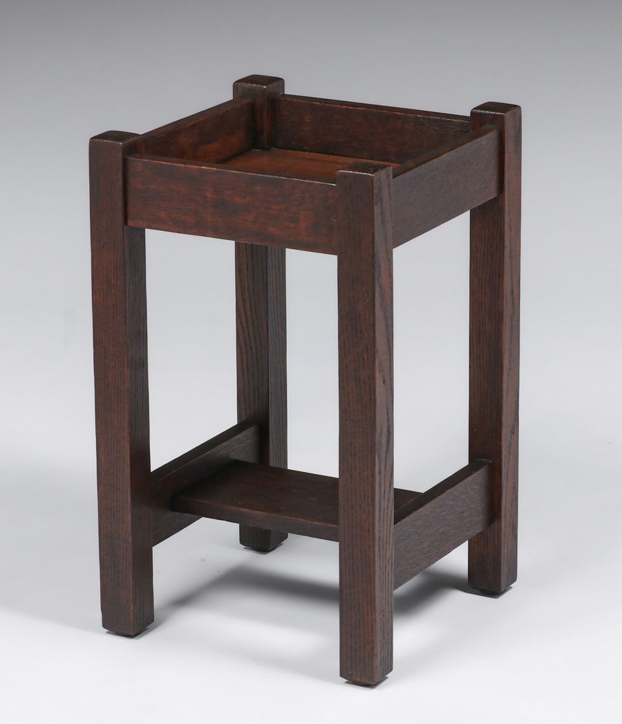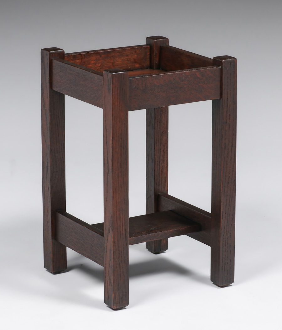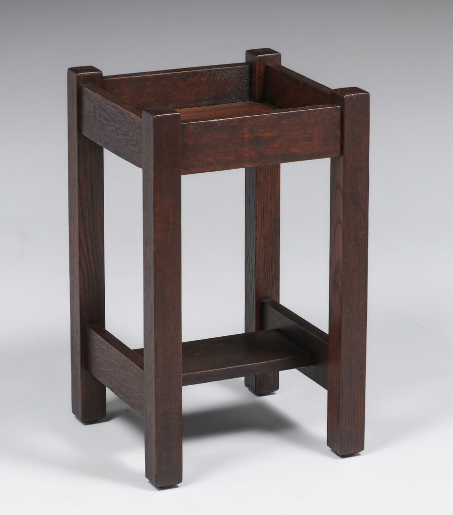 L&JG Stickley Oak Plant Stand c1905-1910. Unsigned. Very nicely refinished. 22"h x 13.25" x 13.25" SOLD