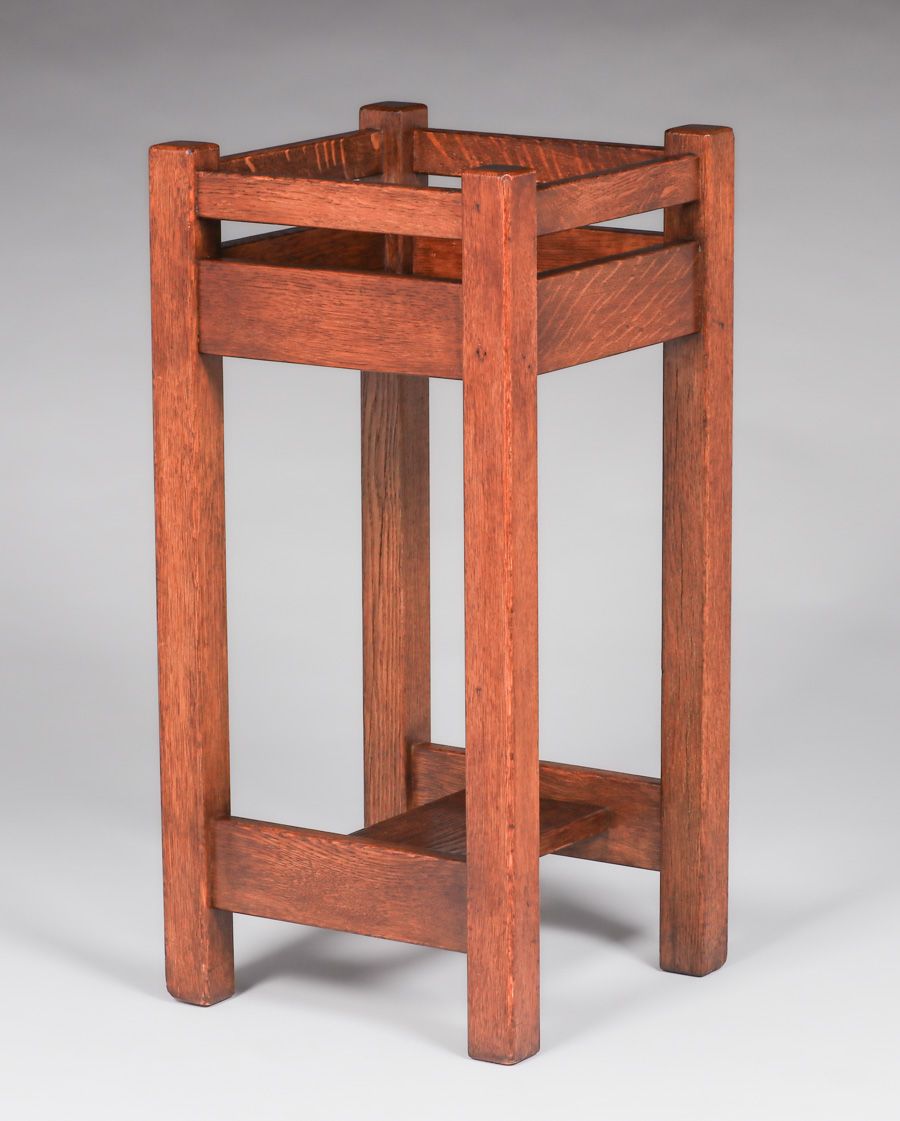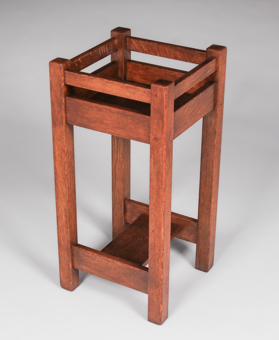 L&JG Stickley Oak Plantstand c1910. Unsigned. Very nicely refinished. 28"h x 13.5" x 13.5" SOLD