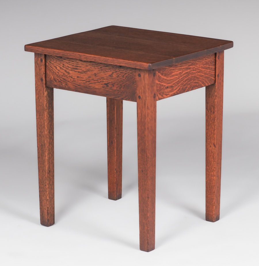 L&JG Stickley One-Drawer Table c1908-1912. Signed. Top refinished perfectly to match original finish. Originally taller. 20"w x 17.75"d x 24"h SOLD