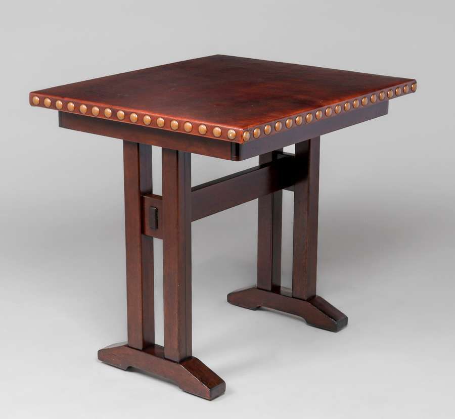 - L&JG Stickley Onondaga Mahogany Leather-Top Table c1904