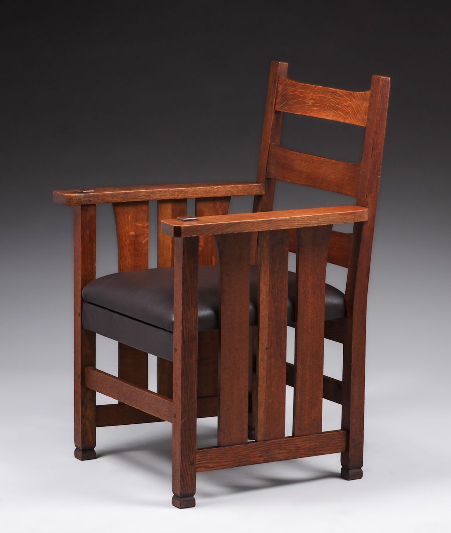 - L&JG Stickley Onondaga Slatted Armchair c1902-1904