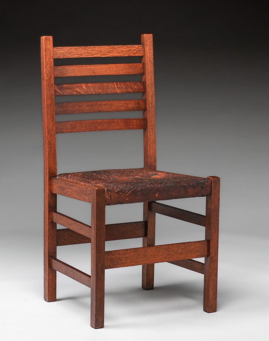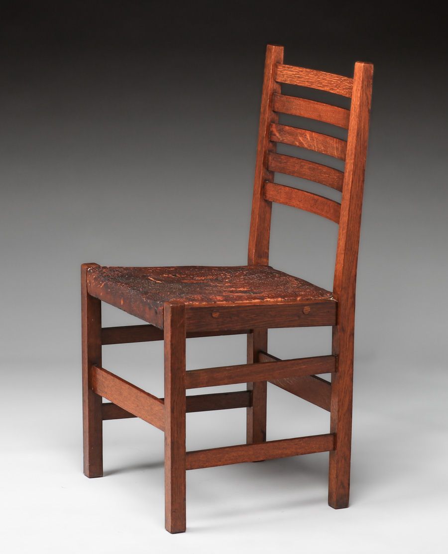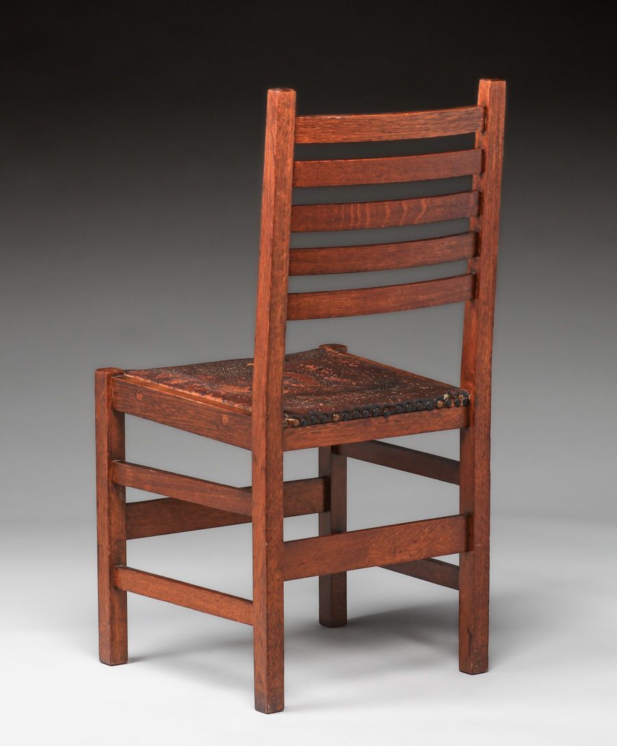 L&JG Stickley Rare Ladderback Side Chair c1910. Unsigned. Excellent original finish and original leather. 35.75"h x 18"w x 16"d $1200