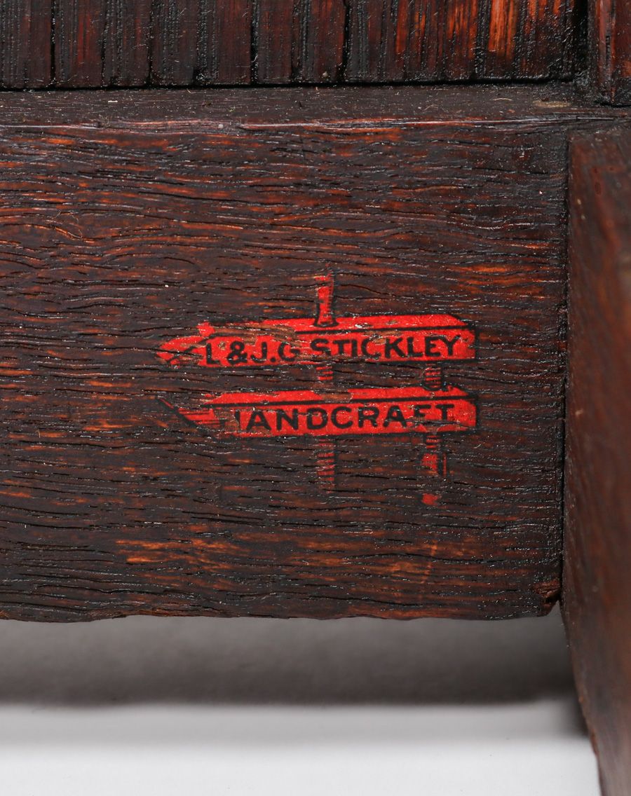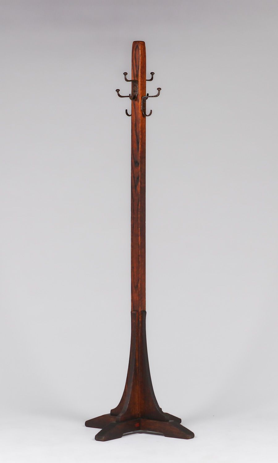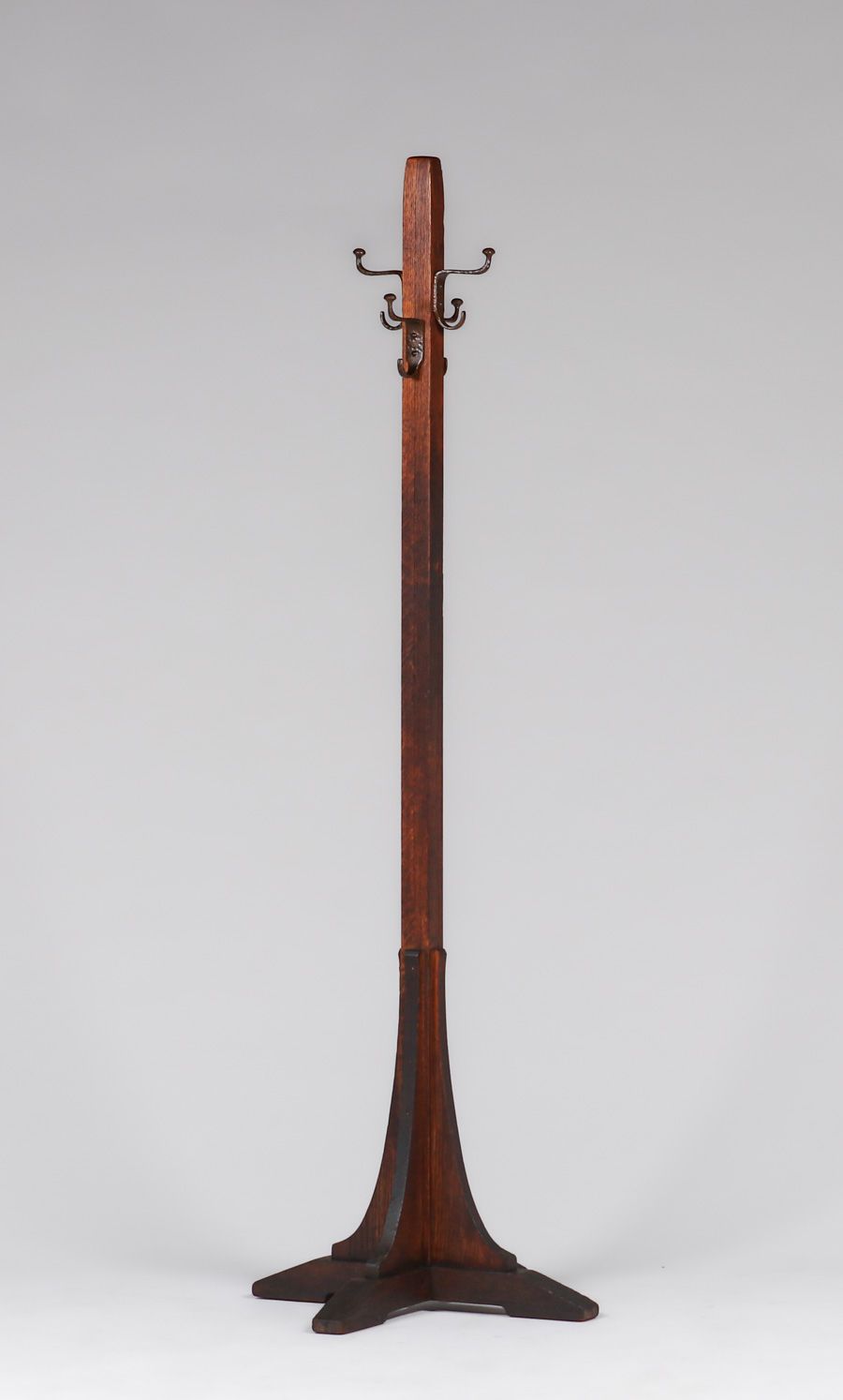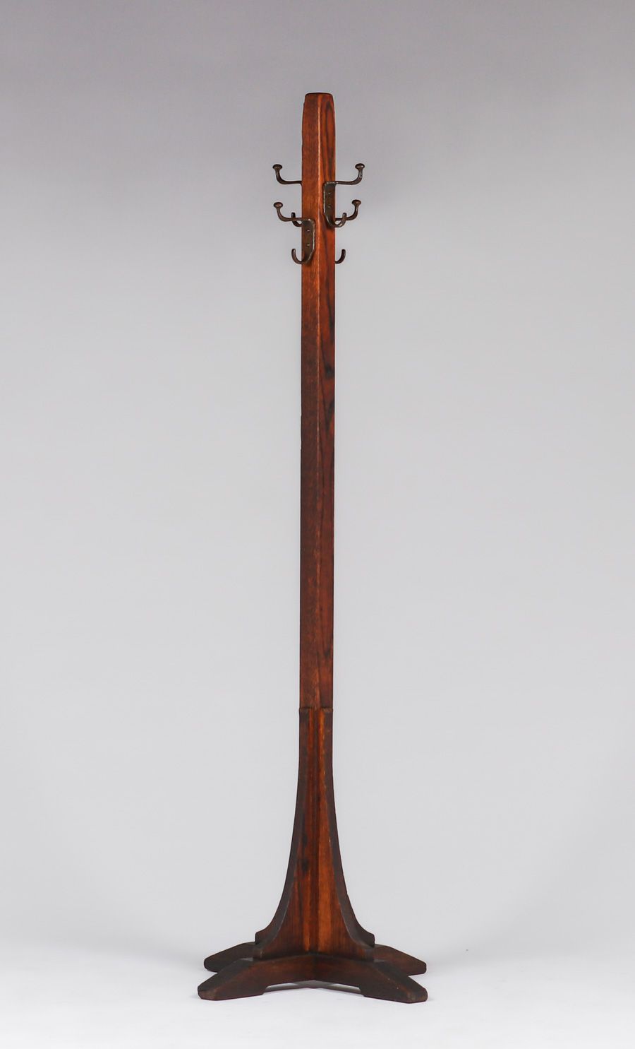 L&JG Stickley Single Oak Coatrack c1908-1912. Signed. Excellent original finish. 72”h x 24” x 24” SOLD