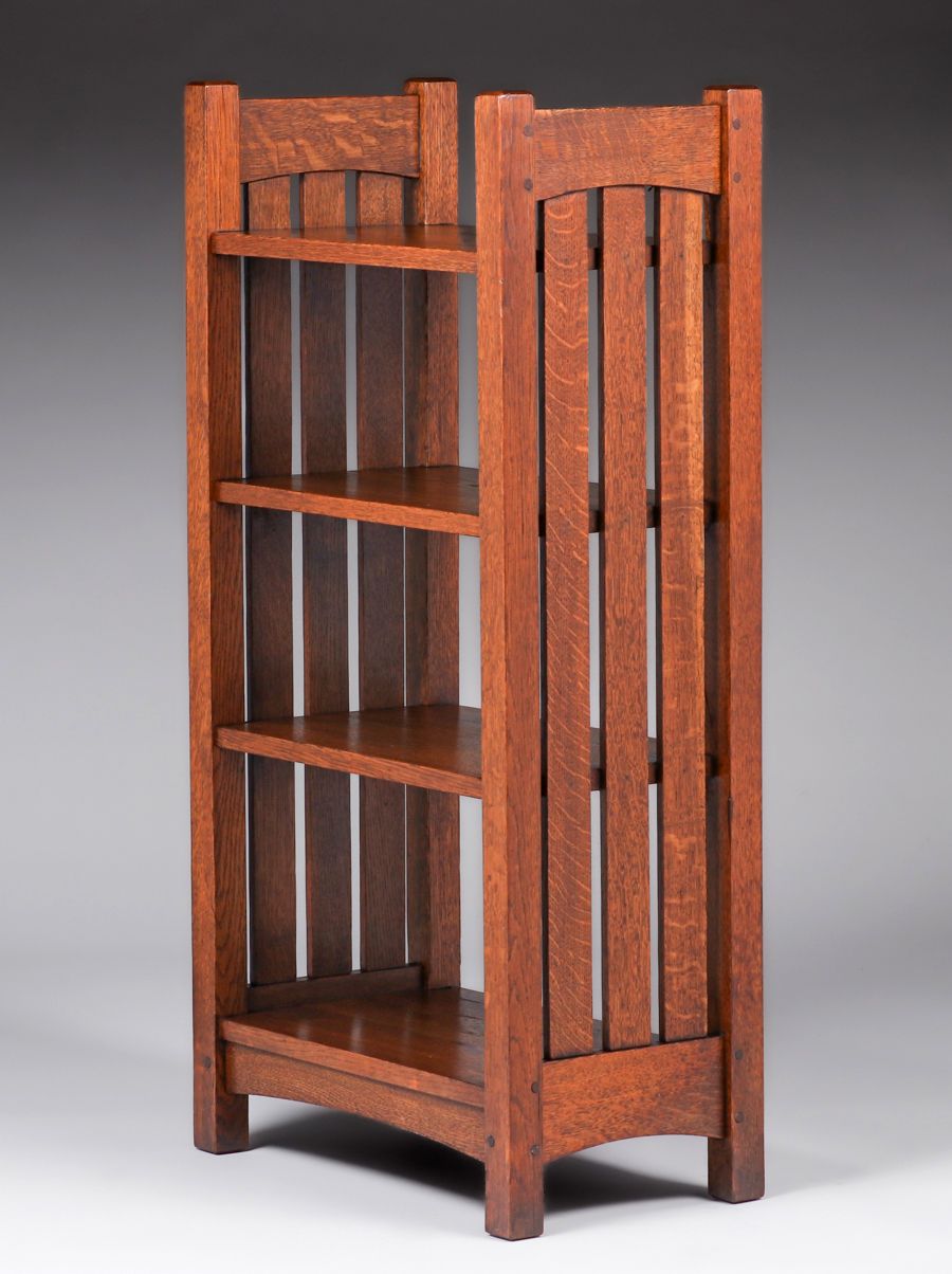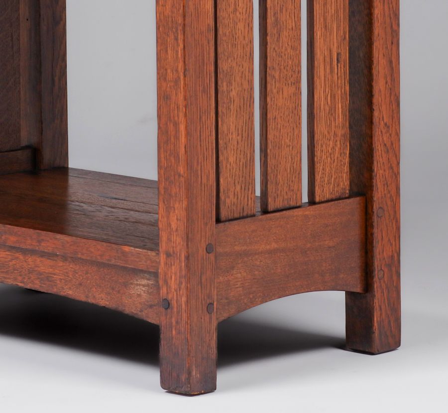 L&JG Stickley Slatted Magazine Stand c1905-1908. Signed “L&JG Stickley Handcraft”. Excellent original finish. 42″h x 21″w x 12″d SOLD
