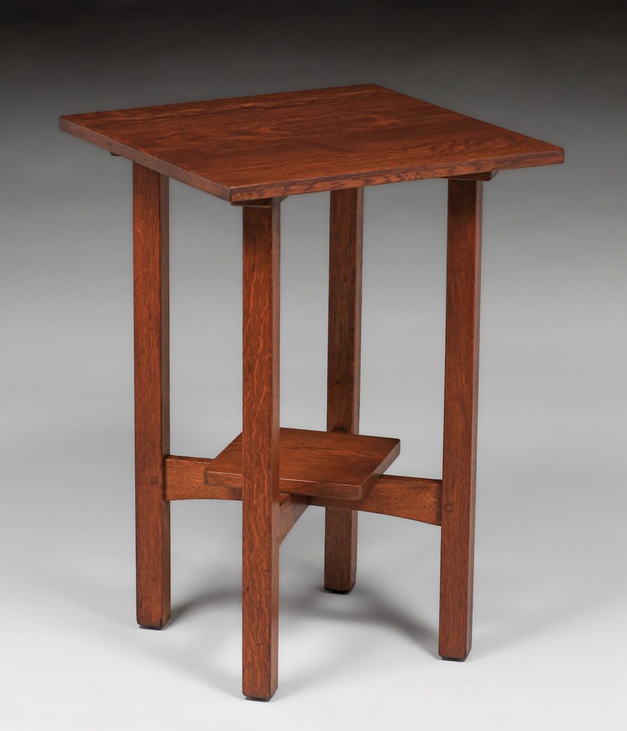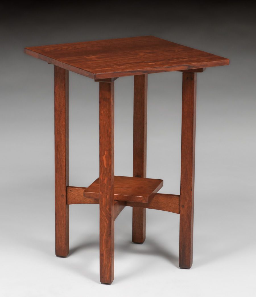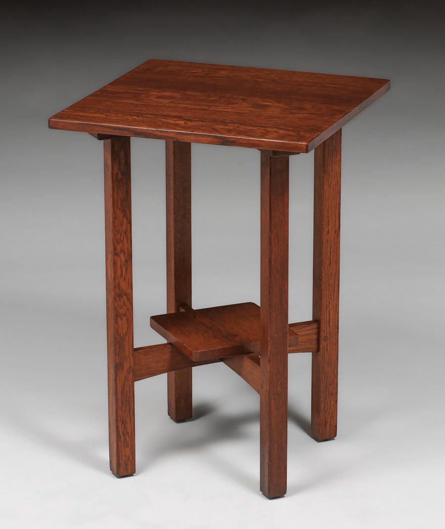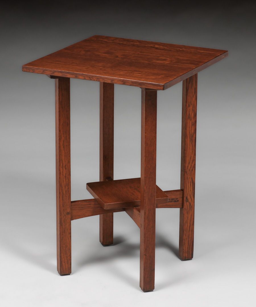L&JG Stickley Square Lamp Table c1910. Unsigned. Top perfectly refinished to match excellent original finish. 24" x 24" x 29"h SOLD