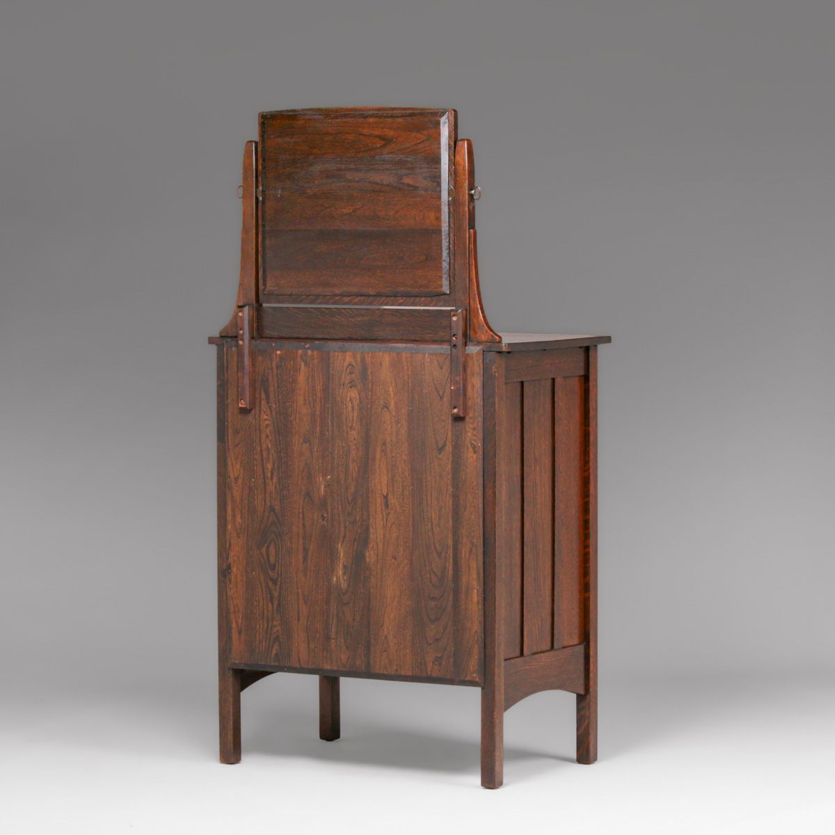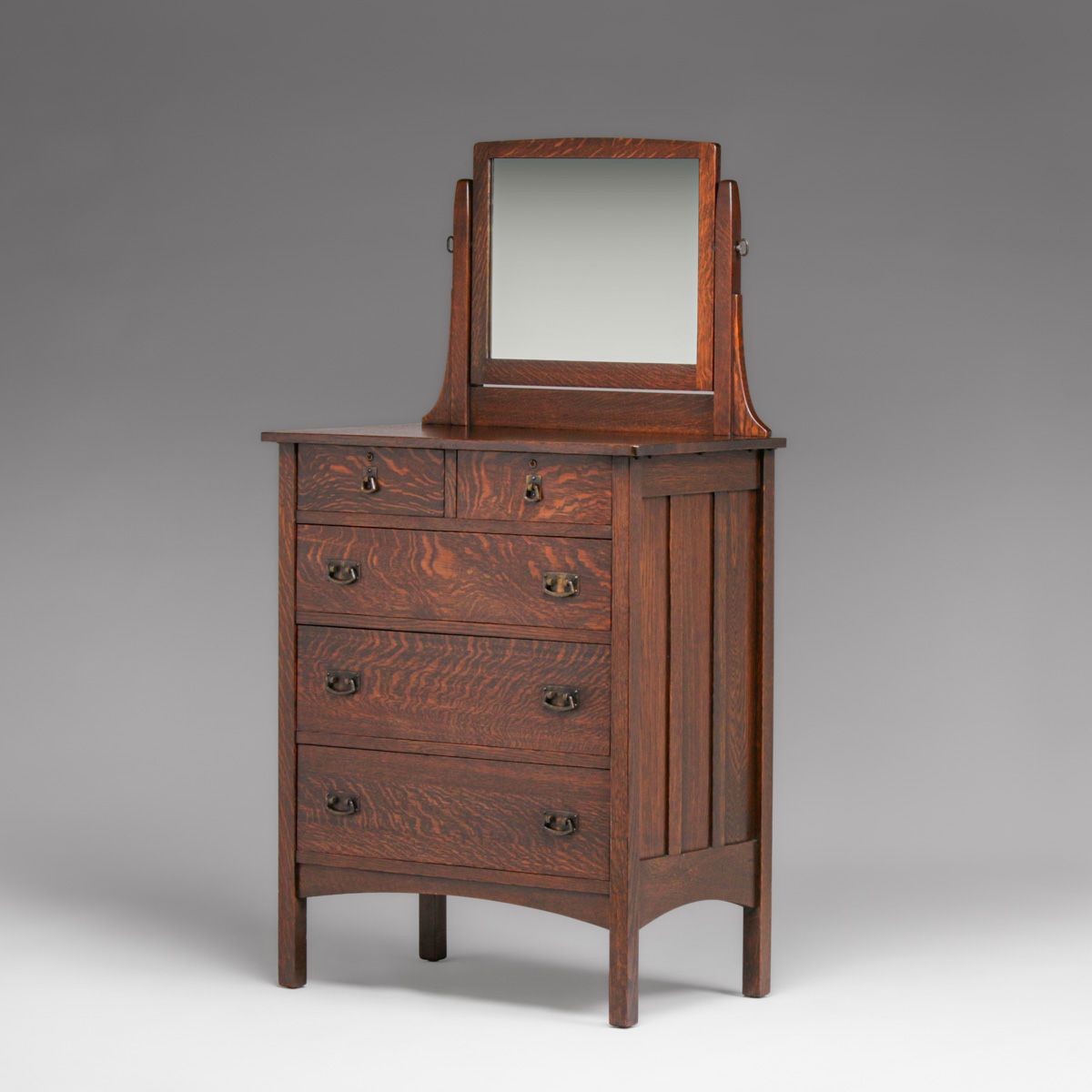 L&JG Stickley Tall Five-Drawer Dresser c1910. Unsigned. Color added to original finish. 63.75"h x 34"w x 20"d