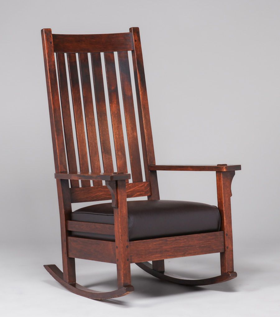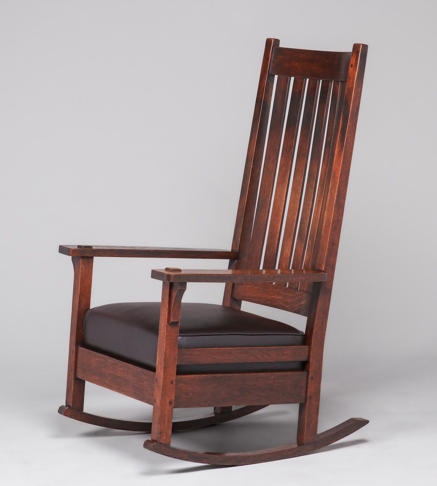 L&JG Stickley Tallback Rocker c1905. Unsigned. Excellent original finish. Rock solid sturdy. 47.5"h x 28"w x 30"d SOLD