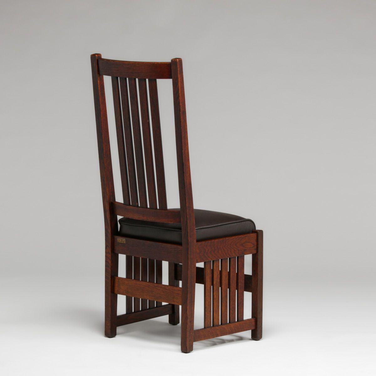 L&JG Stickley Tallback Slatted Side Chair c1908-1912. Signed. Excellent original finish. Rock solid sturdy. 45″h x 19″w x 17″d