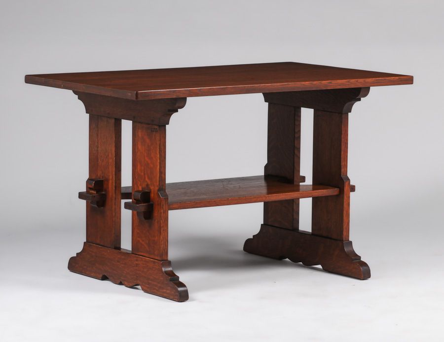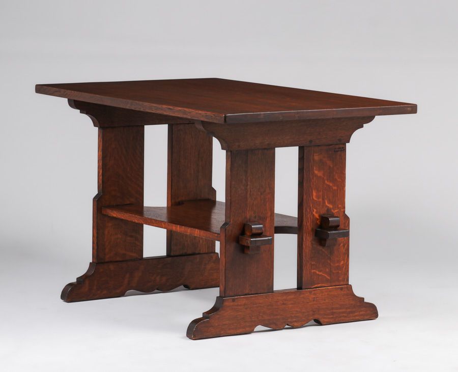 L&JG Stickley Trestle Table c1912-1915. Signed with branded mark. Very nicely refinished. 48"w x 30"d x 29.75"h $2800