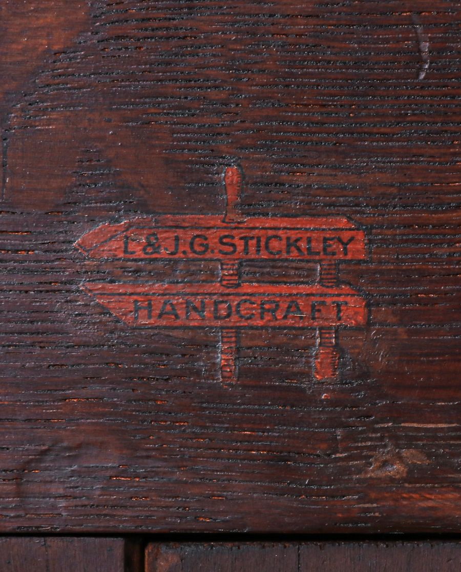 L&JG Stickley Two-Door Bookcase c1905-1907. Chamfered board back. Signed with L&JG Stickley Handcraft mark. Very nicely refinished. 49"w x 55.5"h x 12"d $6500