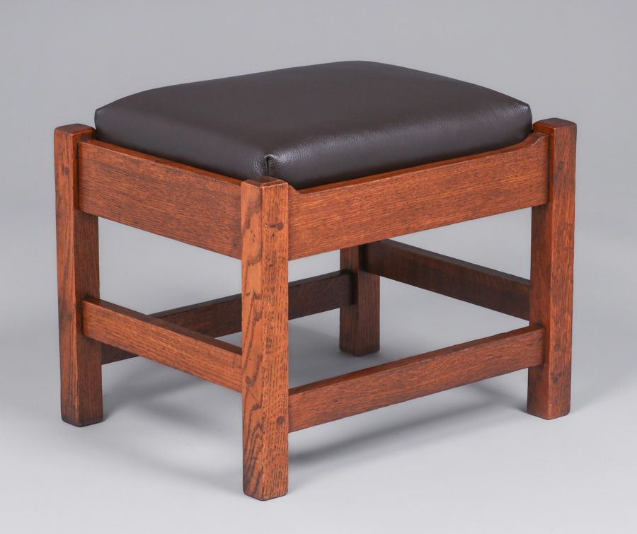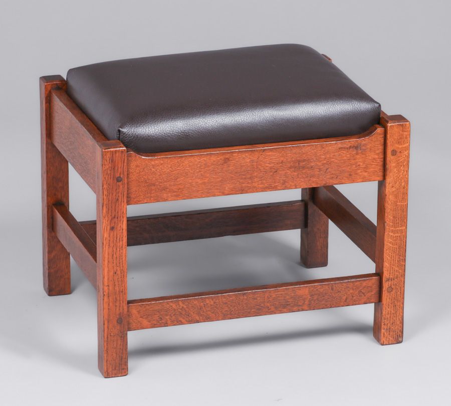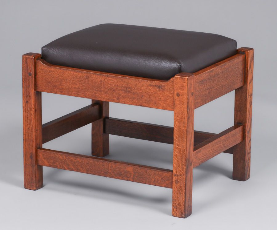 L&JG Stickley U-Back Sided Footstool c1910. Unsigned. Excellent original finish. 20"w x 16.25"d x 16.5"h SOLD