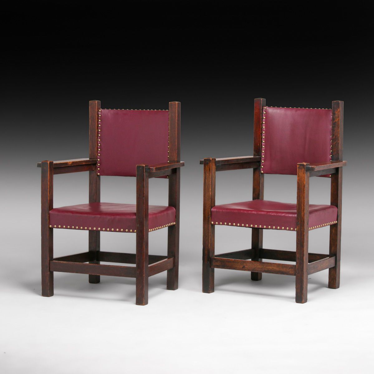 - Pair Early L&JG Stickley Onondaga #794 Oak Armchairs c1902-1904