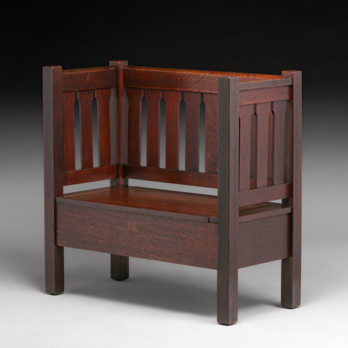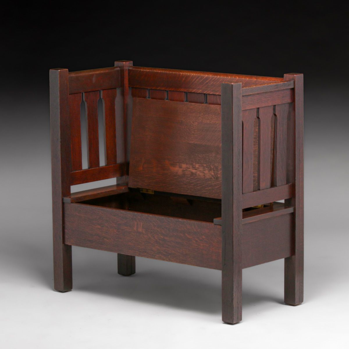 Rare L&JG Stickley #209 Hall Bench c1910. Unsigned. Very nicely refinished. 37”h x 38”w x 18”d