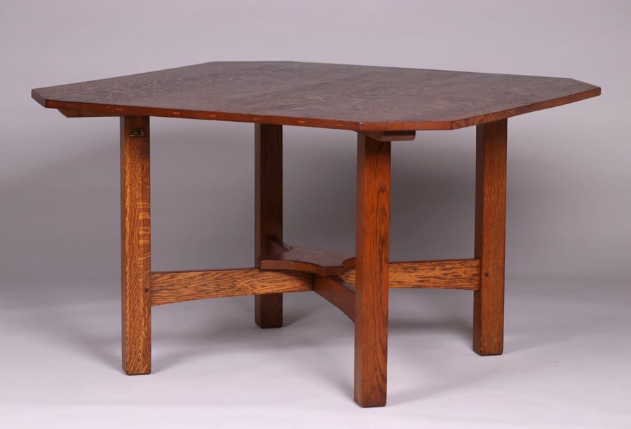 - Rare L&JG Stickley 48" Square Clip-Corner Dining Table c1907-1912