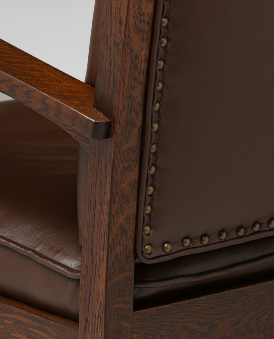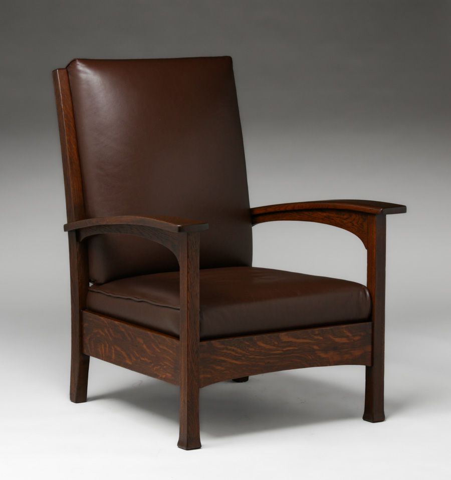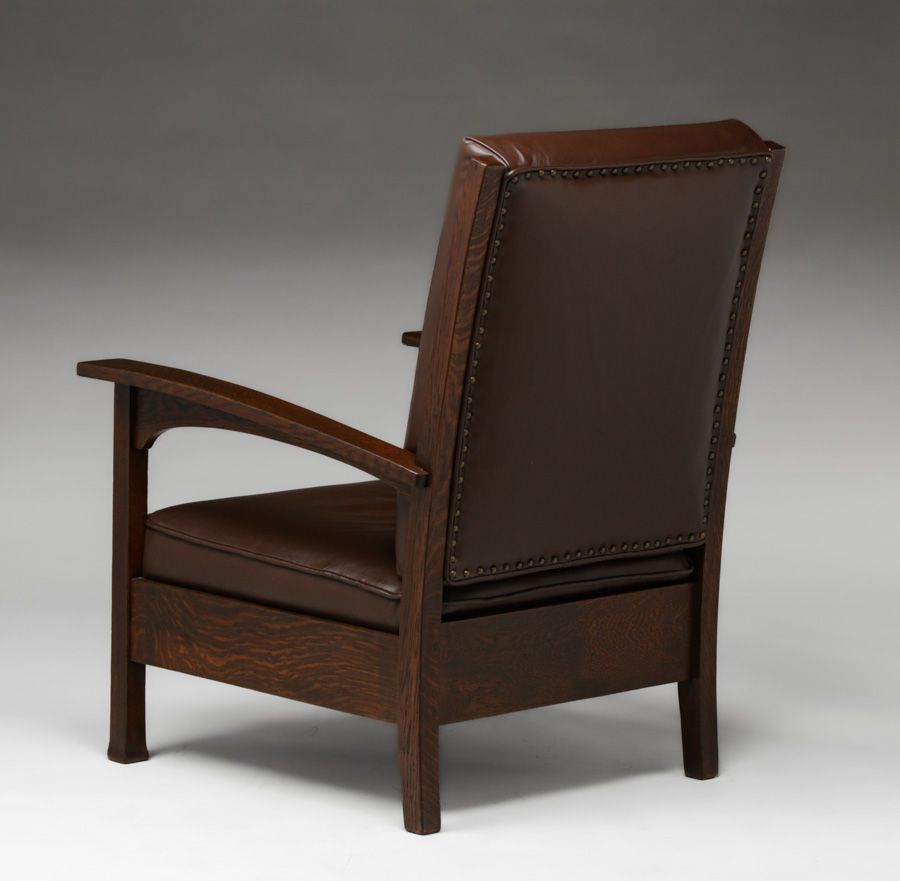 Rare L&JG Stickley #482 Bowarm Armchair c1910. Unsigned. Very nicely refinished. Very sturdy. This form almost never surfaces. 39.75"h x 31.5"w x 34.5"d