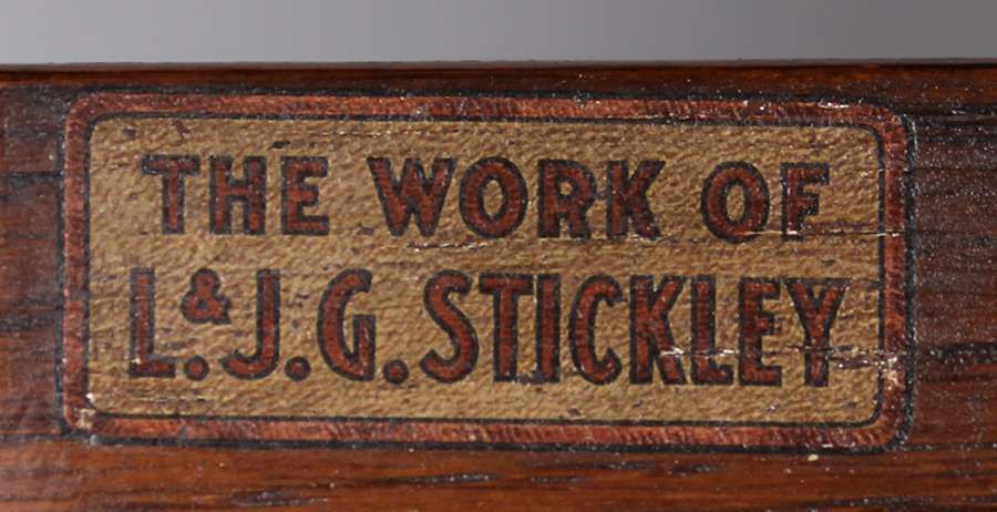 Set of 4 L&JG Stickley Dining Chairs c1910. Signed. Excellent original finish. Rock solid sturdy. 35.75"h x 17.75"w x 16.5"d SOLD