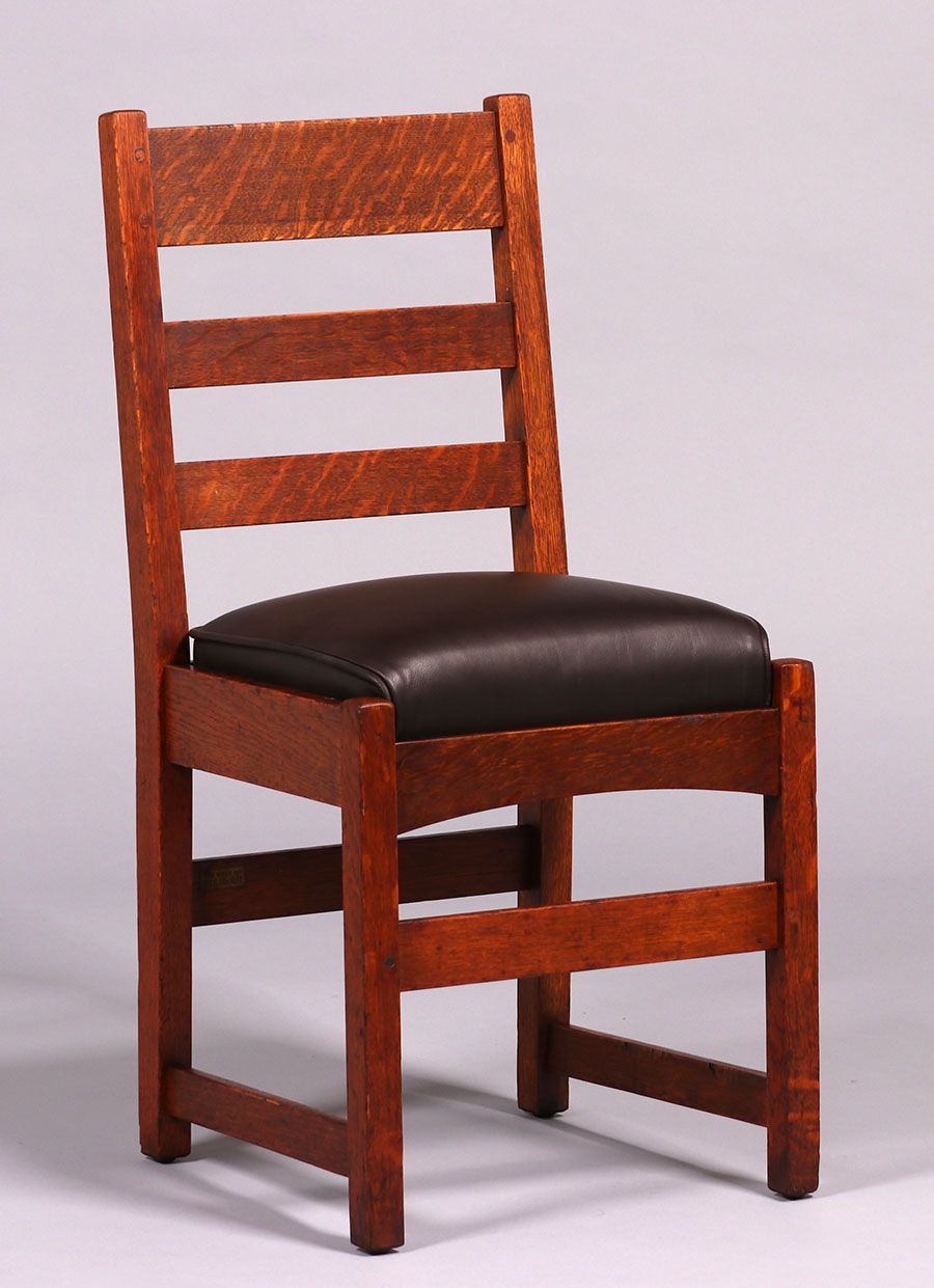 Set of 4 L&JG Stickley ladder back dining chairs c1907-1911. Signed. Excellent original finish. Rock-solid sturdy. 35.5"h x 17.25"w x 16.5"d SOLD
