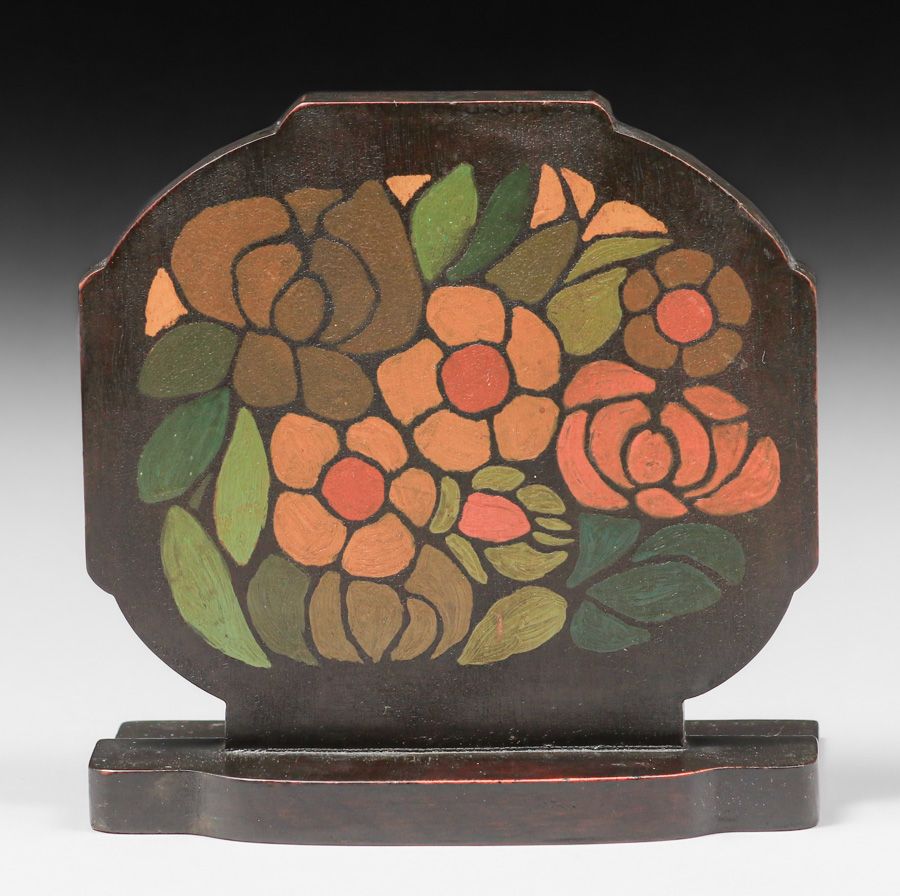 Mathews Furniture Shop -Arthur & Lucia Mathews Hand Painted Mahogany Bookends c1910s. Unsigned. Excellent original condition. 5 3/8"h x 5.5"w $7500 pair