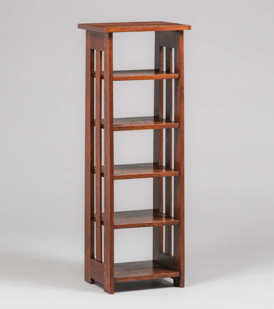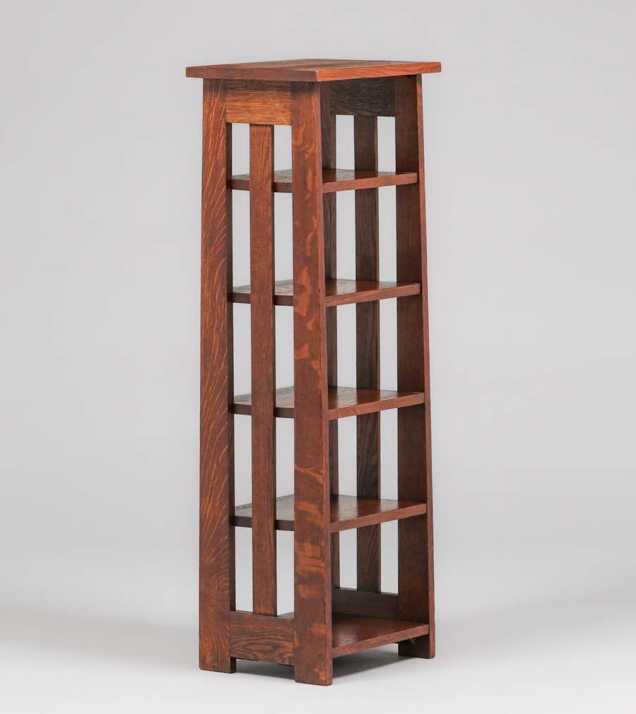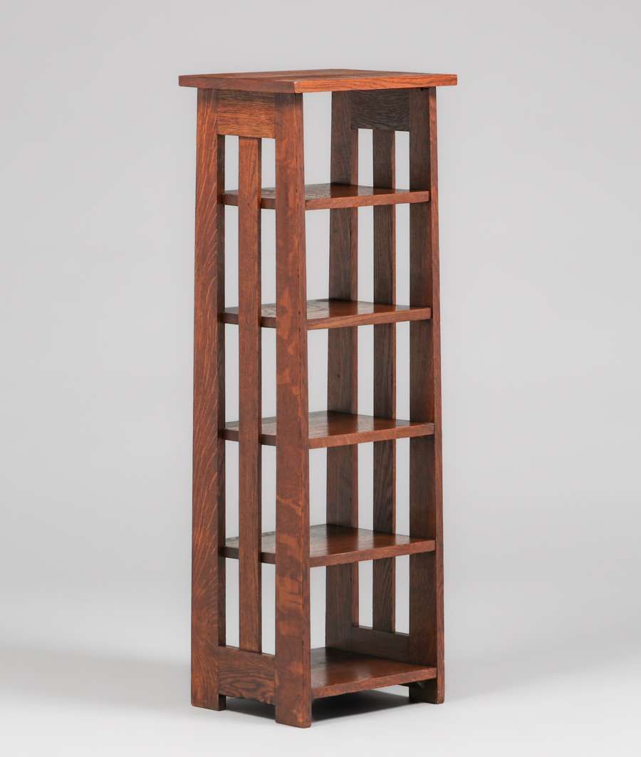 Michigan Chair Co Magazine Stand c1910. Unsigned. Very nicely refinished. Rock solid sturdy. 45"h x 16"w x 12"d SOLD
