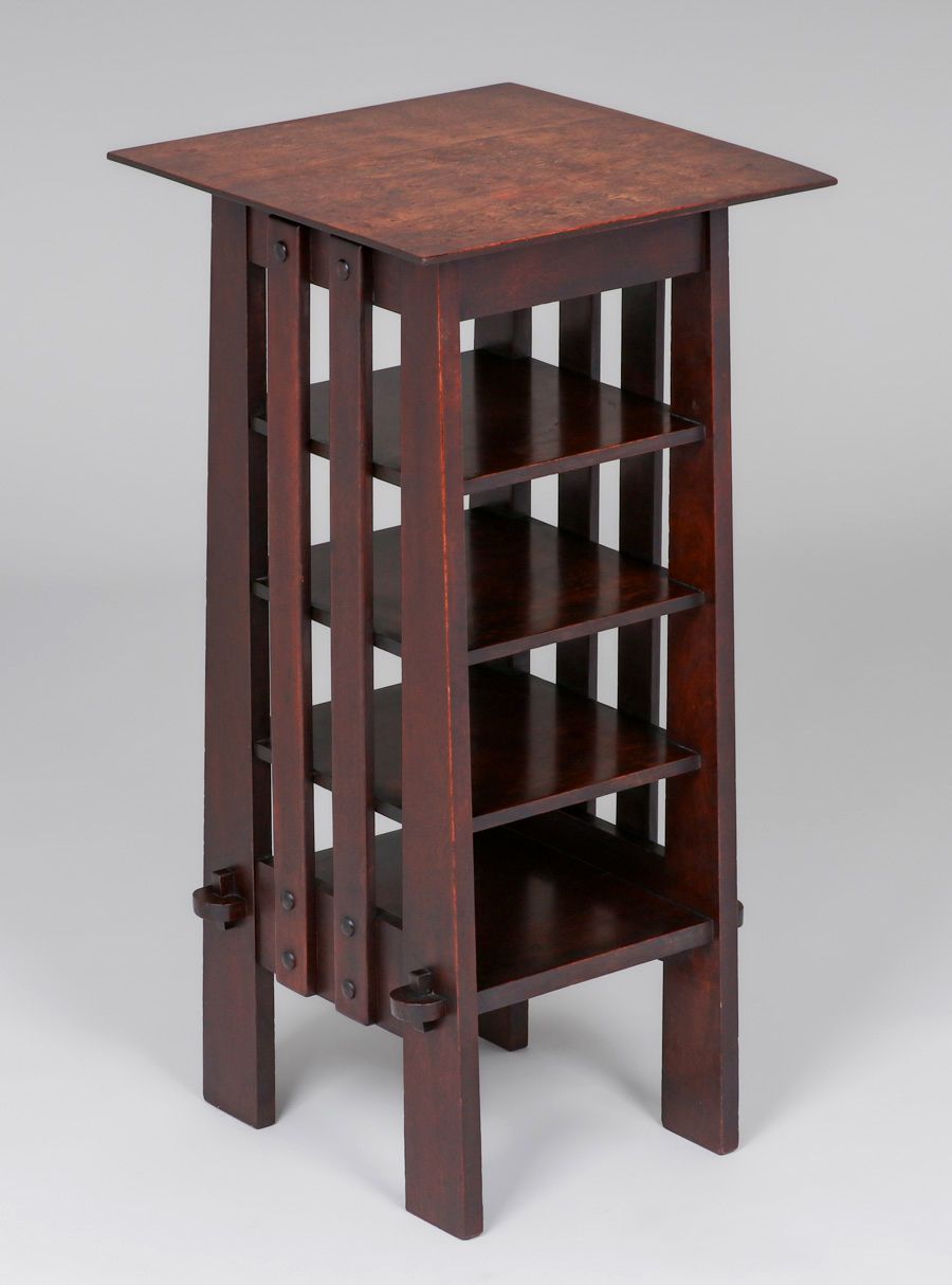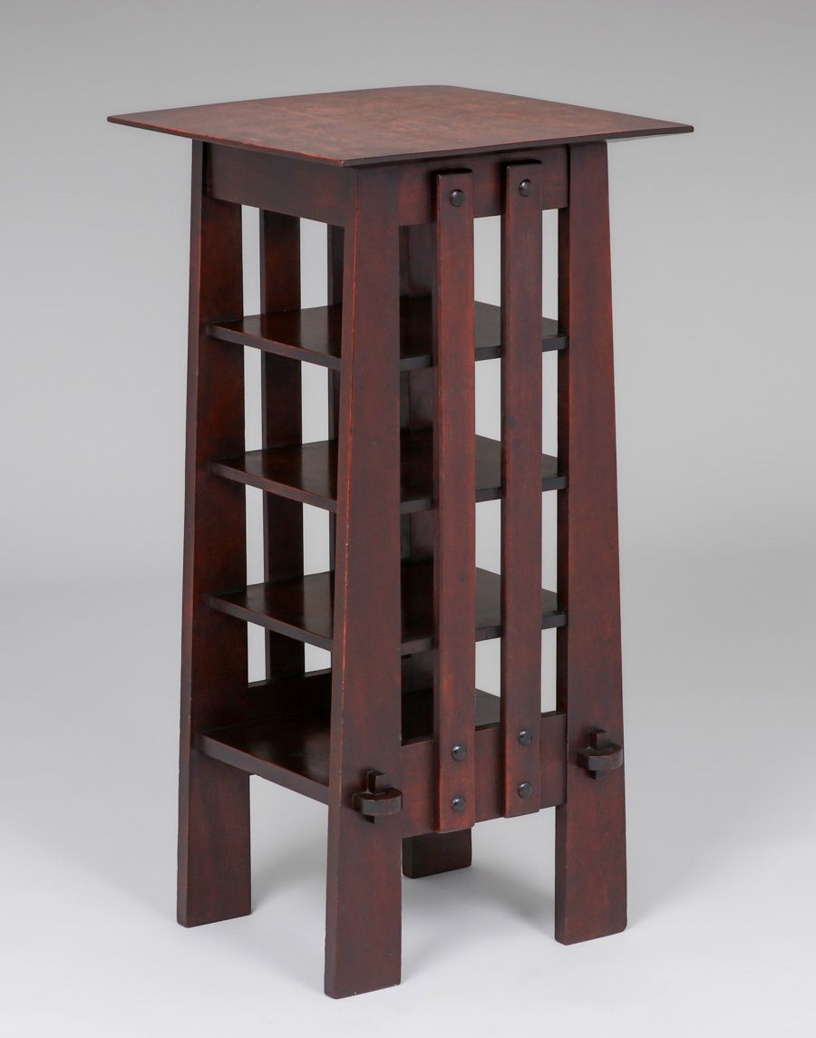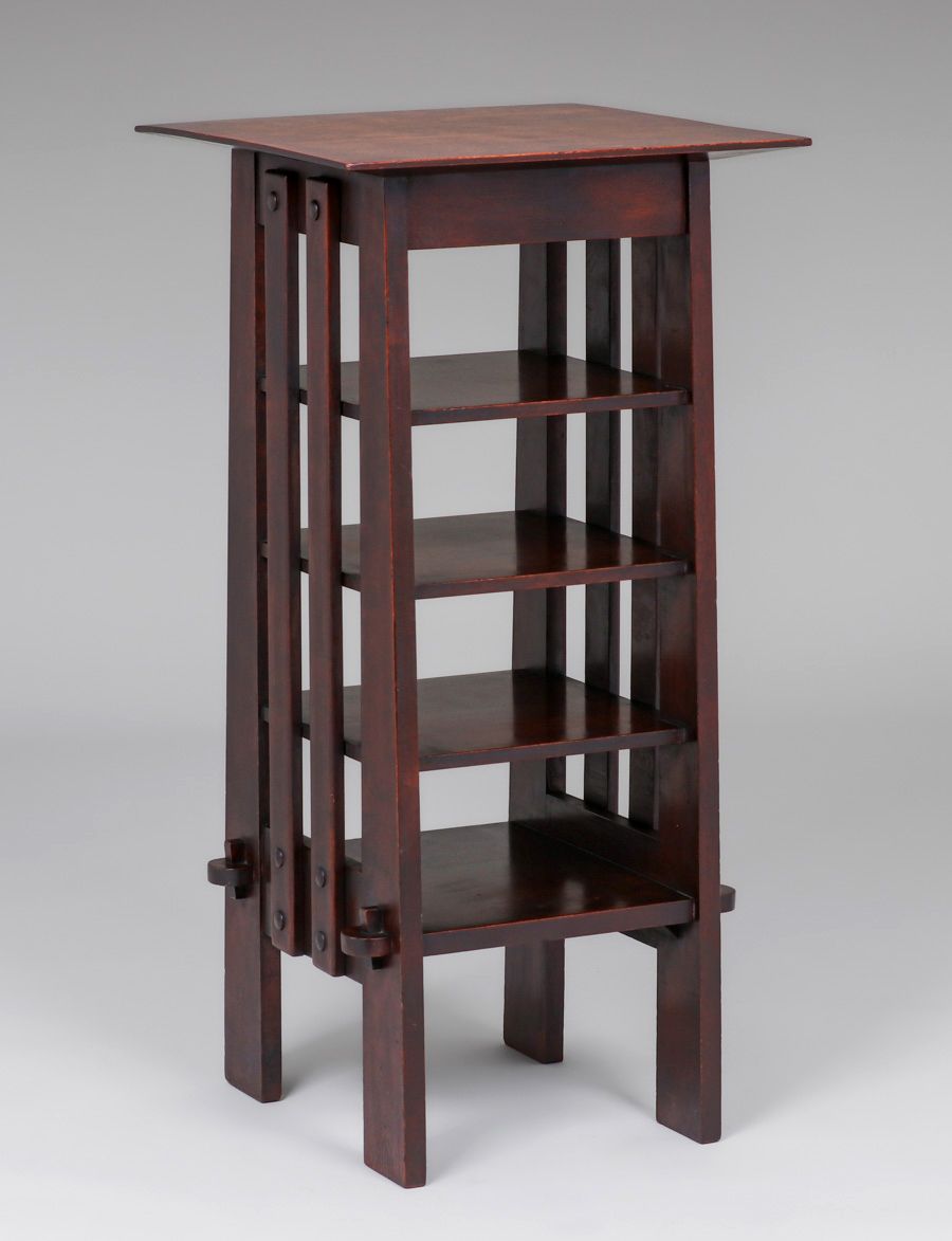 Michigan Chair Co Maple Slatted Magazine Stand c1910. Signed. Excellent original finish. 33.25”h x 16.75”d SOLD