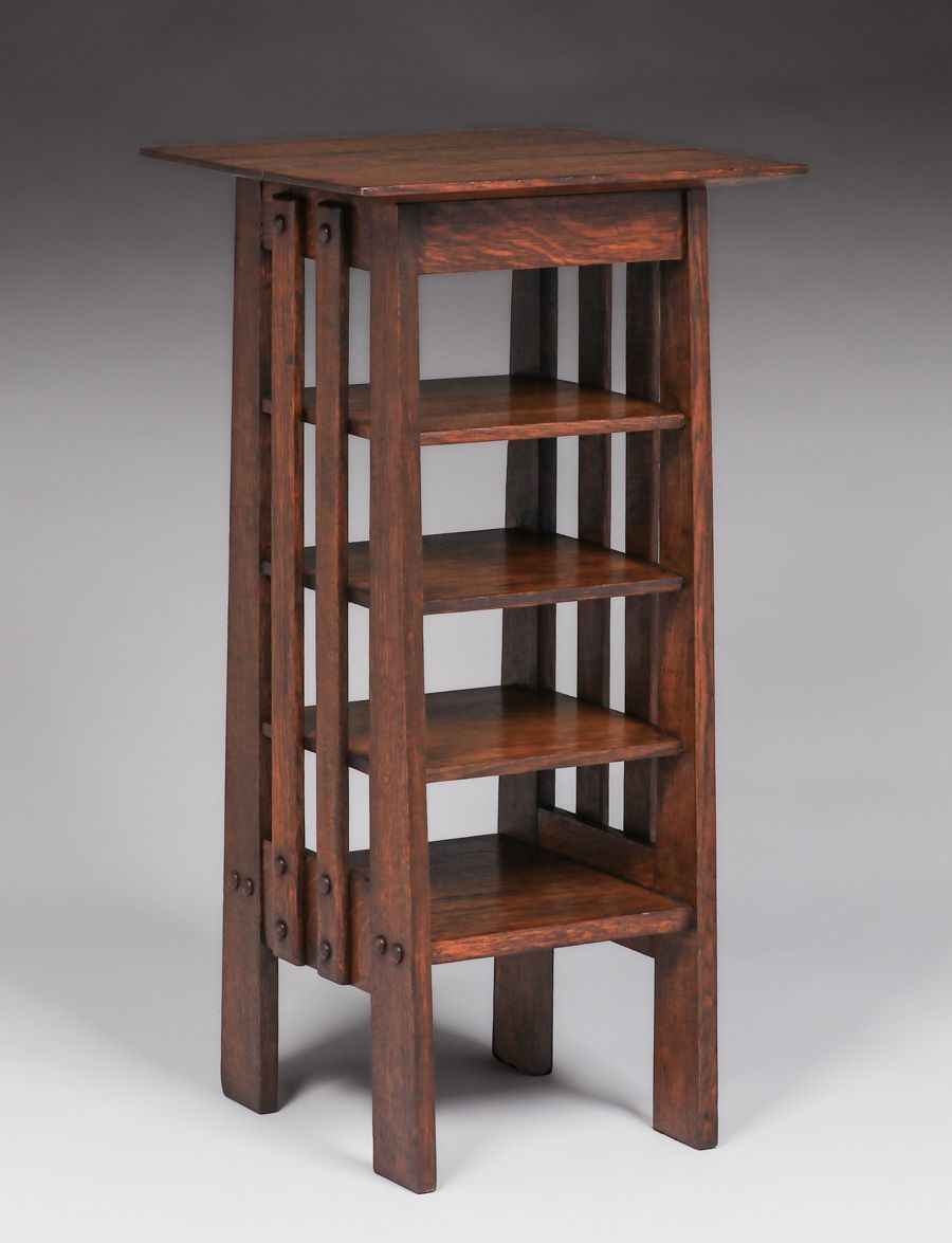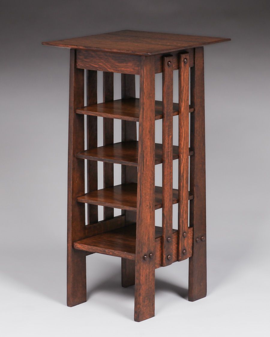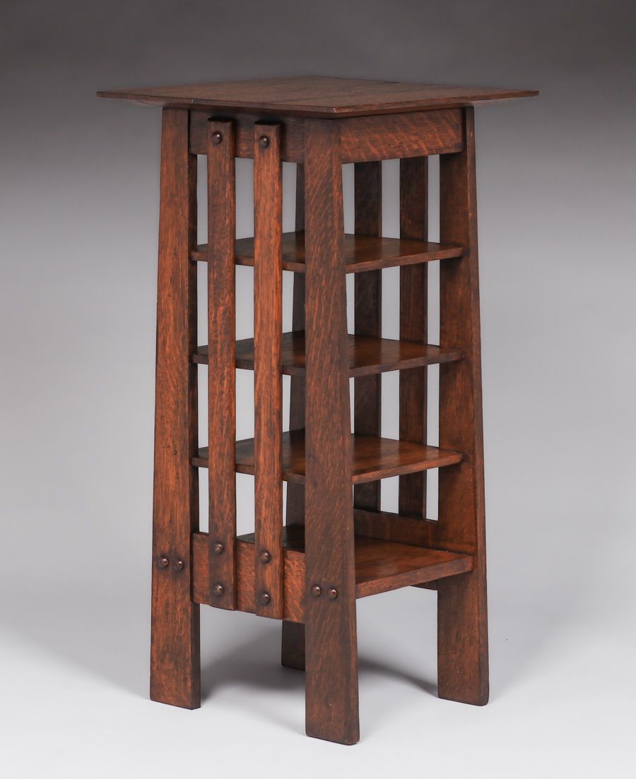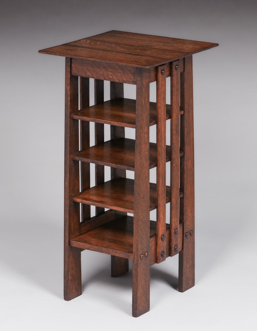 - Michigan Chair Co Oak Slatted Magazine Stand c1905